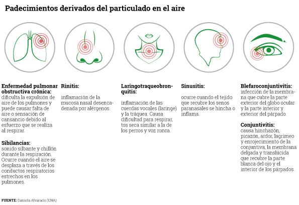 La conclusión es que “esas concentraciones se aducen a la actividad antrópica (del ser humano), en la cual vehículos, industria, agricultura y quema de residuos fungen como fuentes importantes de dichos contaminantes”. Así se lee en el informe elaborado por Daniela Alvarado, investigadora de la Escuela de Ciencias Ambientales de la Universidad Nacional (UNA).
