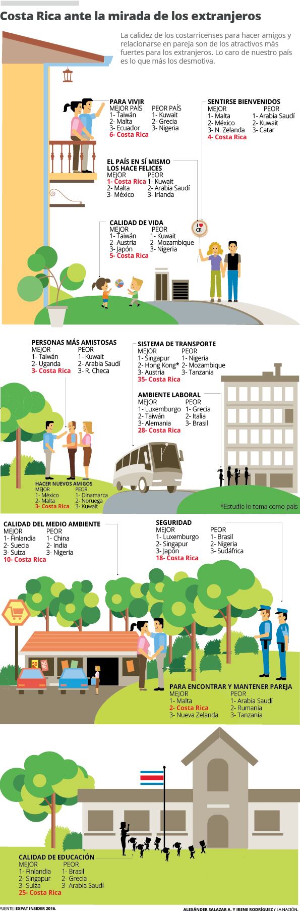 Los números. En el ámbito general, Costa Rica es el sexto mejor país para vivir, superado, entre otros lugares, por naciones como Taiwán, Malta y Ecuador.