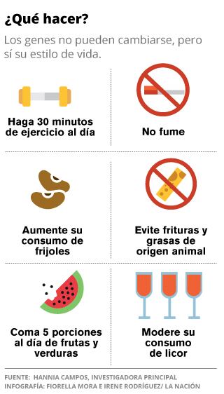 “La gente le da mucha importancia a los genes, pero este estudio demuestra que no tienen tanto peso en la salud del corazón. Un buen estilo de vida resta poder a los ‘malos genes’, y los hábitos nocivos le ganan la batalla a los ‘genes buenos’”, explicó Hannia Campos, doctora costarricense en Salud Pública, quien investiga el infarto en los ticos desde hace 30 años.