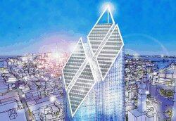 Así quedaría el edificio de Foster, el rascacielos número dos, que tendría 78 pisos y 382 m de altura. | EFE (FOSTER AND PARTNERS)