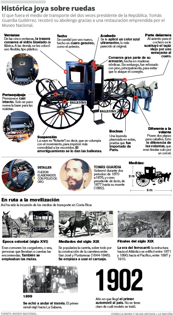 Transportó las ideas liberales y el autoritarismo de quien fuera el primer militar en sentarse en la silla presidencial de Costa Rica. El carruaje de Tomás Guardia recobró su garbo gracias a una restauración y ahora espera sorprender a público en el Museo Nacional.