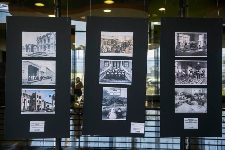 Ahí se hospeda una muestra de 35 fotografías que rememora la fundación de hospitales nacionales como el México y el San Juan de Dios, ambos en San José, y el San Rafael de Alajuela.