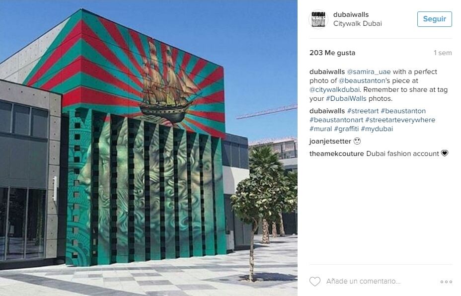 La empresa se unió al proyecto Dubái Walls, cuyo propósito es introducir el arte callejero en el Medio Oriente y crear una conversación sobre esta manifestación artística con los residentes y visitantes de la región, señala el sitio web de la iniciativa.
