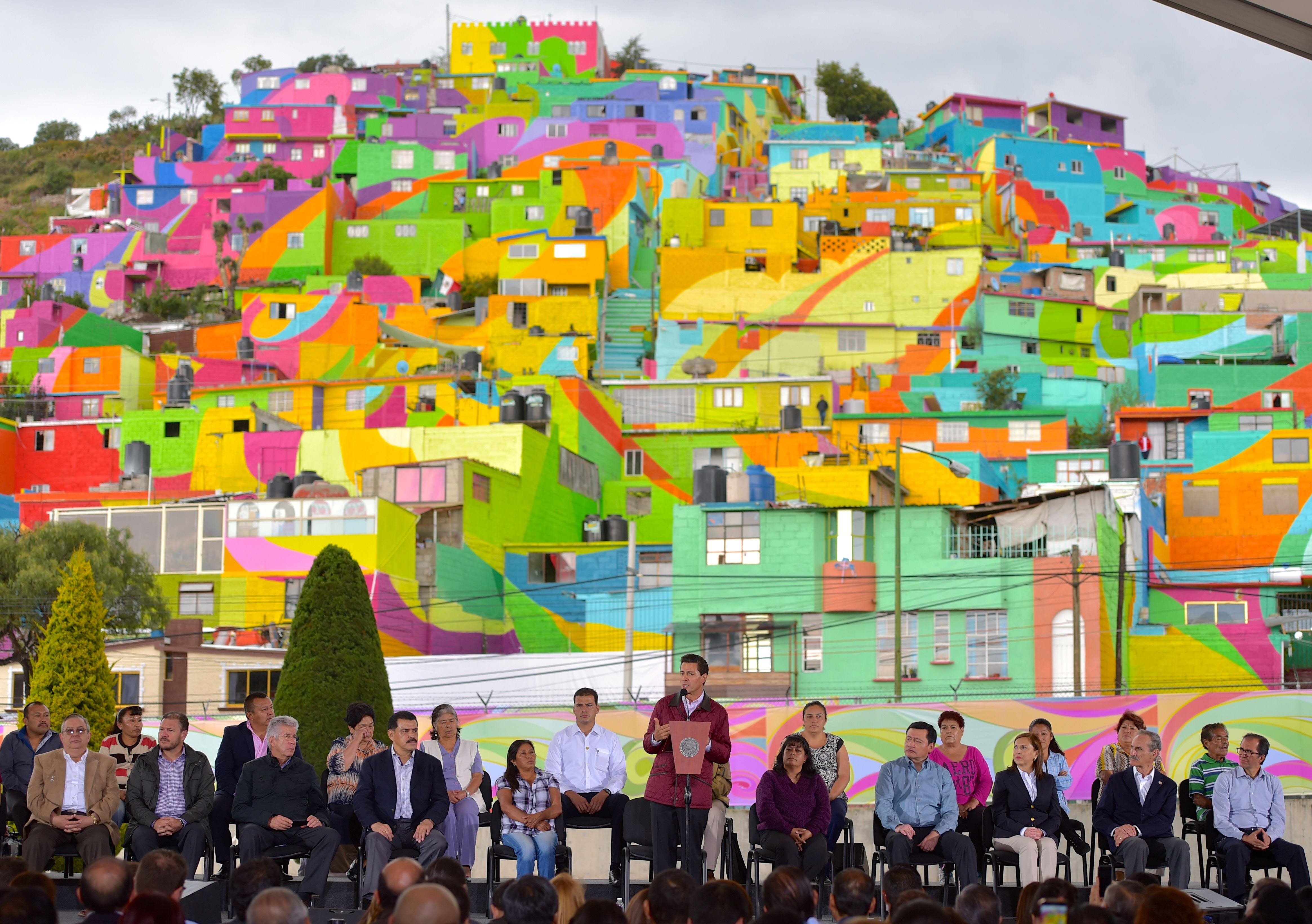 Allí, un grupo de artistas que pertenecen a la agrupación Germen Colectivo –con el apoyo de las autoridades locales- pintaron 209 casas, que son habitadas por 452 familias, informó la BBC.