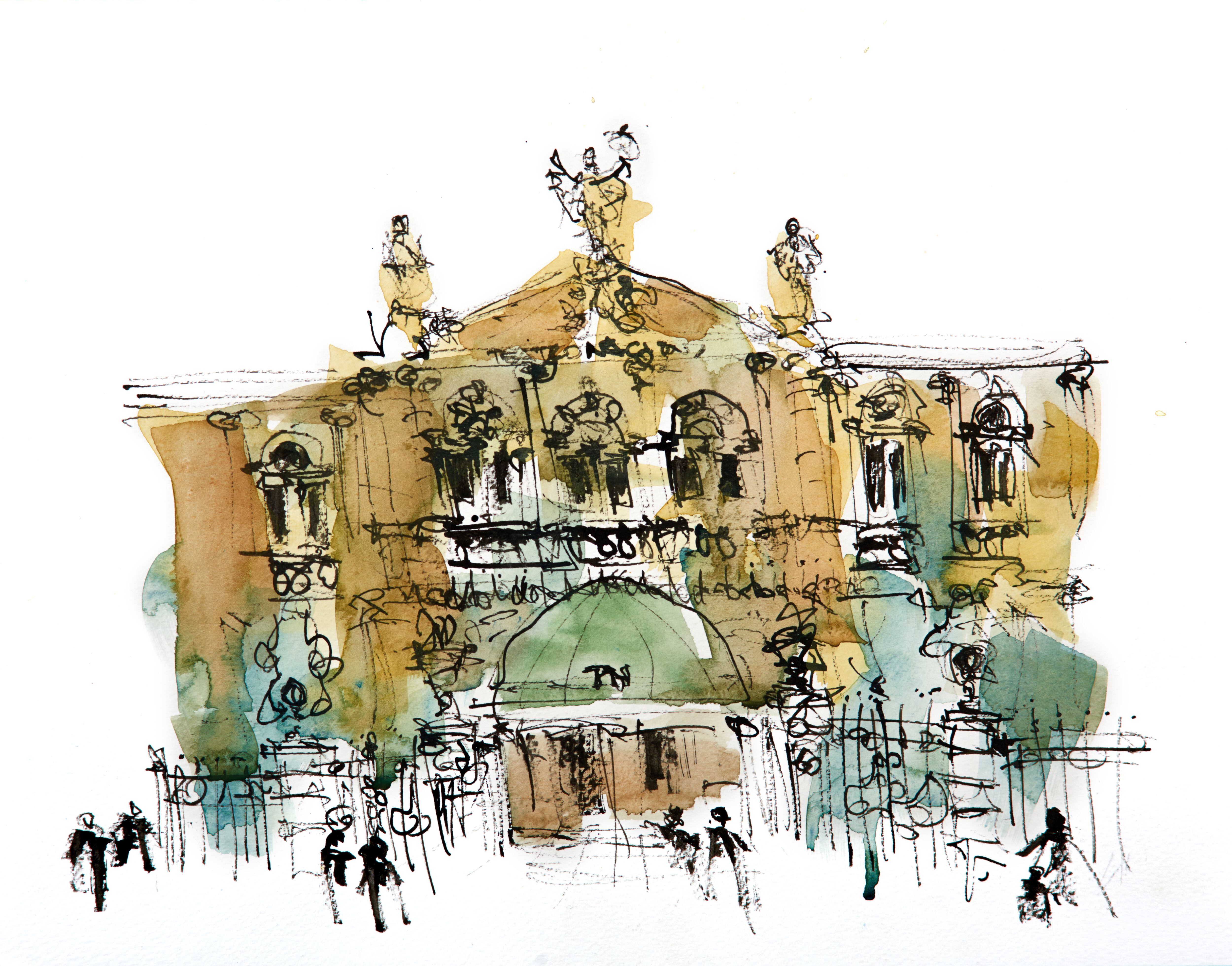 Urban Sketchers ha sido su escuela. En el proceso ha ido desarrollando su estilo. También la rapidez en el trazo, requisito indispensable de todo croquisero urbano.