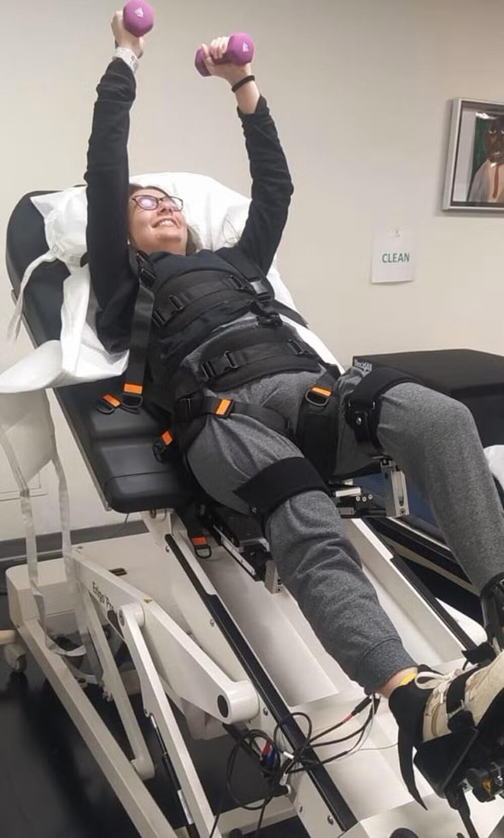 Trabajó en fortalecer sus brazos para usar silla de ruedas y movilizarse en espacios reducidos. El tratamiento fue financiado por la institución médica como parte de una acción filantrópica.