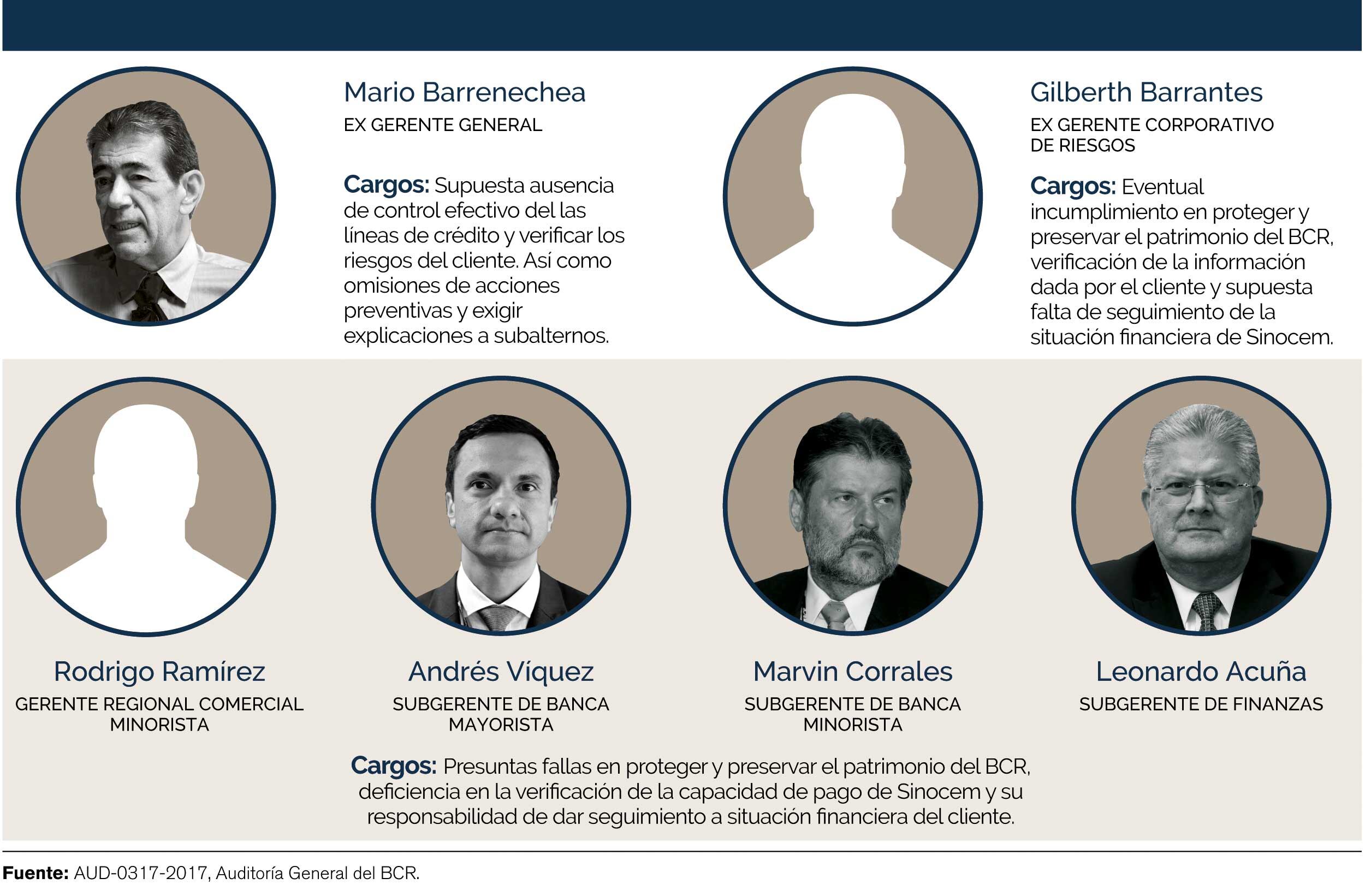 La investigación efectuada por la Auditoría del Banco de Costa Rica hace una descripción de las supuestas irregularidades cometidas por 13 funcionarios de la institución en el otorgamiento, desembolso y seguimiento de las líneas de crédito de Sinocem Costa Rica.