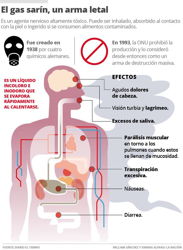 En el letal ataque contra una población siria el 4 de abril se usó gas sarín, confirmó el viernes un organismo observador internacional del empleo de armas químicas. El ataque sobre Jan Sheijun, en la provincia de Idlib, dejó más de 90 muertos, entre ellos mujeres y niños, y provocó indignación en el mundo al difundirse las fotos y videos del epílogo, en los que aparecen niños moribundos.