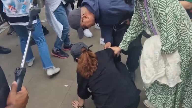 Para ayudar a la turista, el guardia le preguntó: “¿Puede ir a buscar a un oficial de policía?”. A pesar de este gesto, las personas ignoraron los comentarios y se centraron en la recuperación de la mujer.
