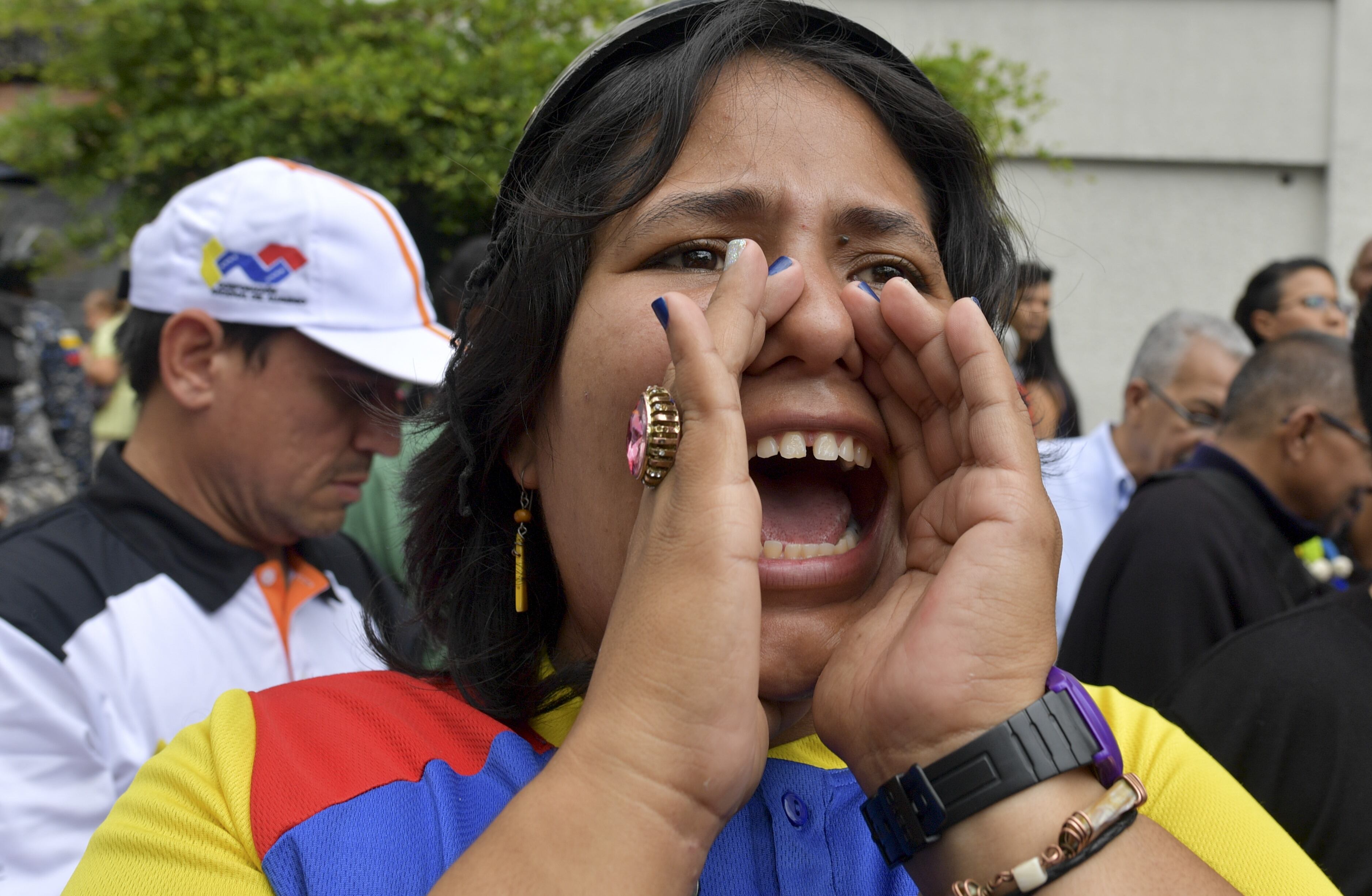 La protesta transcurrió sin incidentes, con un hombre invitando a los policías y militares a “sumarse a la lucha” por medio de un megáfono. “¡A ustedes tampoco les alcanzan los reales (dinero)!”, arengaba ante la mirada impávida de los uniformados.