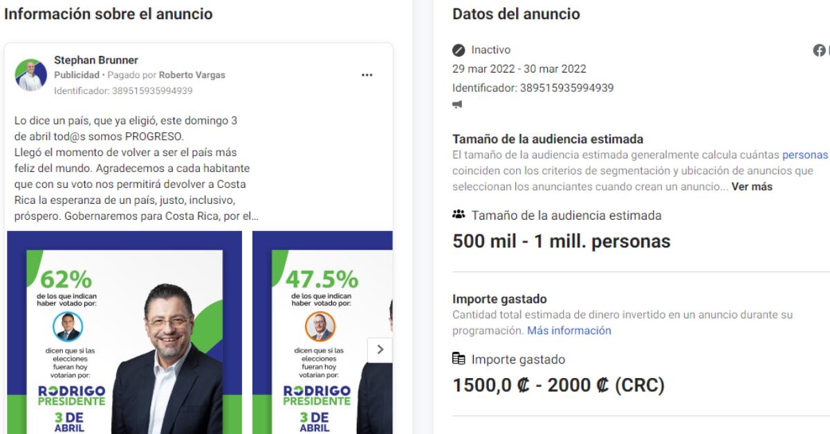En abril, Meta reveló que una red conformada por cientos de perfiles, páginas y grupos se dedicó a compartir contenido sobre los candidatos presidenciales en enero, antes de las elecciones en Costa Rica. Según la compañía, la red, que también operó en El Salvador, gastó más de $128.000 en publicidad digital y llegó a más de 212.000 cuentas en redes sociales.