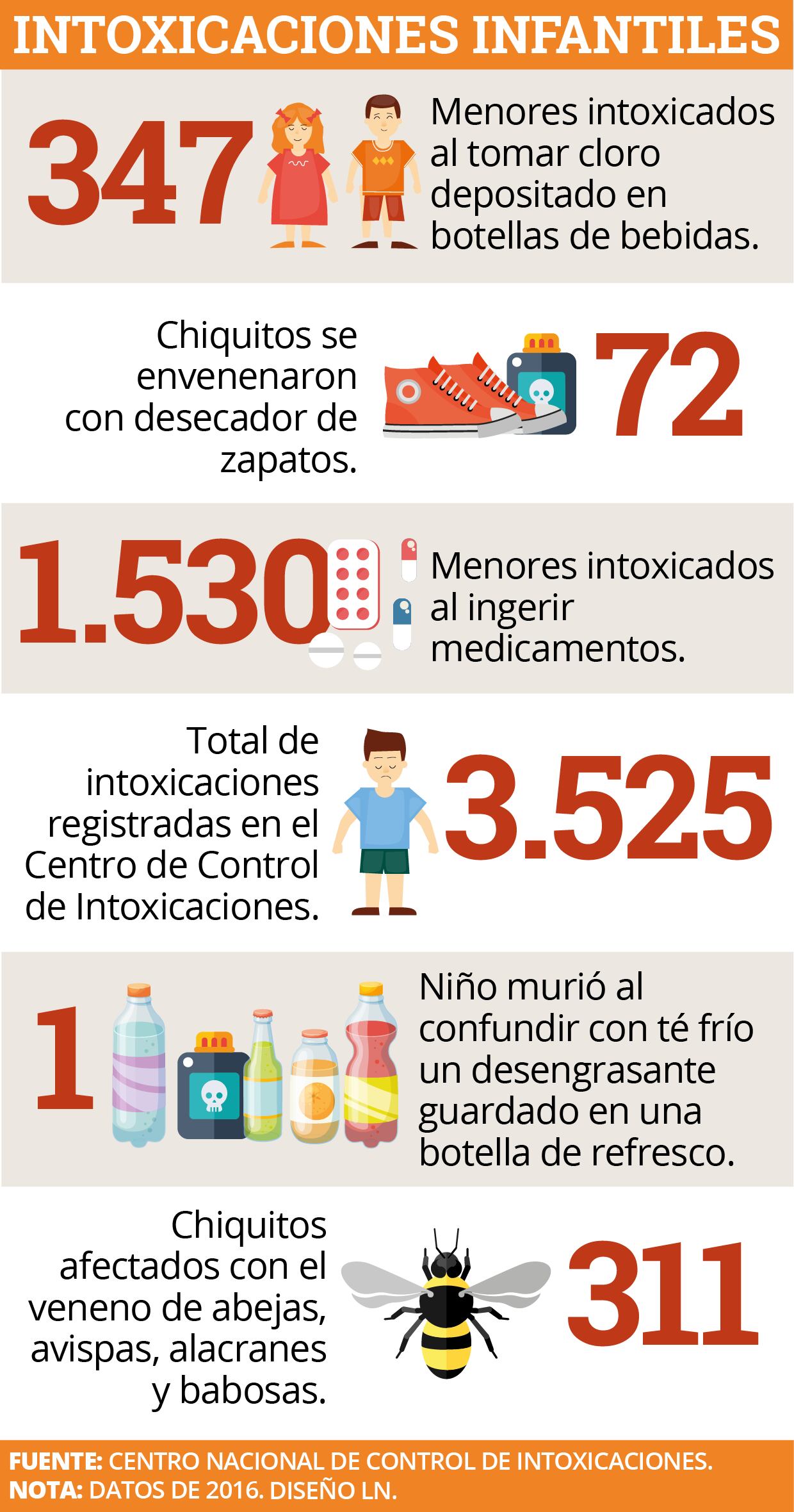 En el 2015 el Centro Nacional de Control de Intoxicaciones registró 3.376 intoxicaciones en niños menores de 12 años.