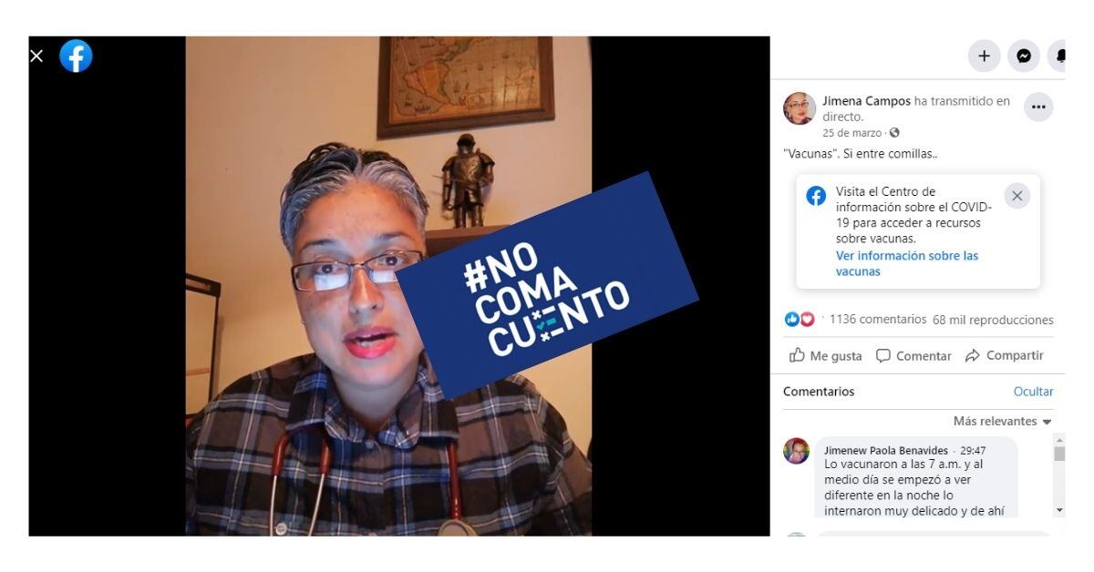 Además, la doctora también aparece en videos de la página de Facebook de un grupo antivacunas que, recientemente, instaló un toldo informativo en Bagaces, Guanacaste.