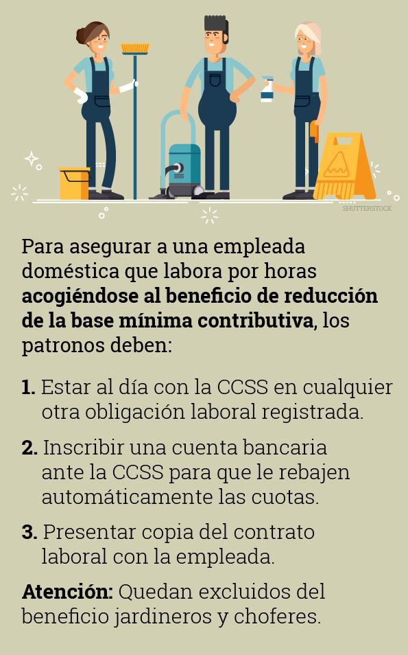 Entre esas condiciones está la obligación de estar al día con la CCSS, registrar una cuenta bancaria para que le hagan los rebajos automáticos de las cuotas y aportar copia del contrato de trabajo con la doméstica.