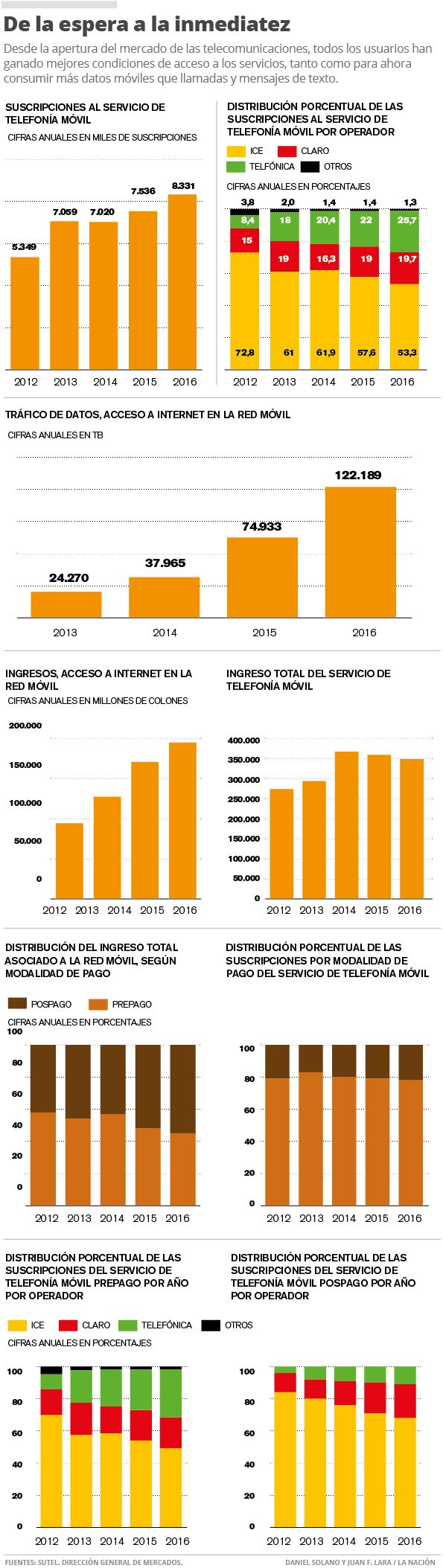 Cifra de enlaces activos creció 10,6% con 795.000 líneas nuevas en el 2016, respecto a los 7,5 millones del 2015. Ticos quintuplicaron consumo de datos en cuatro años