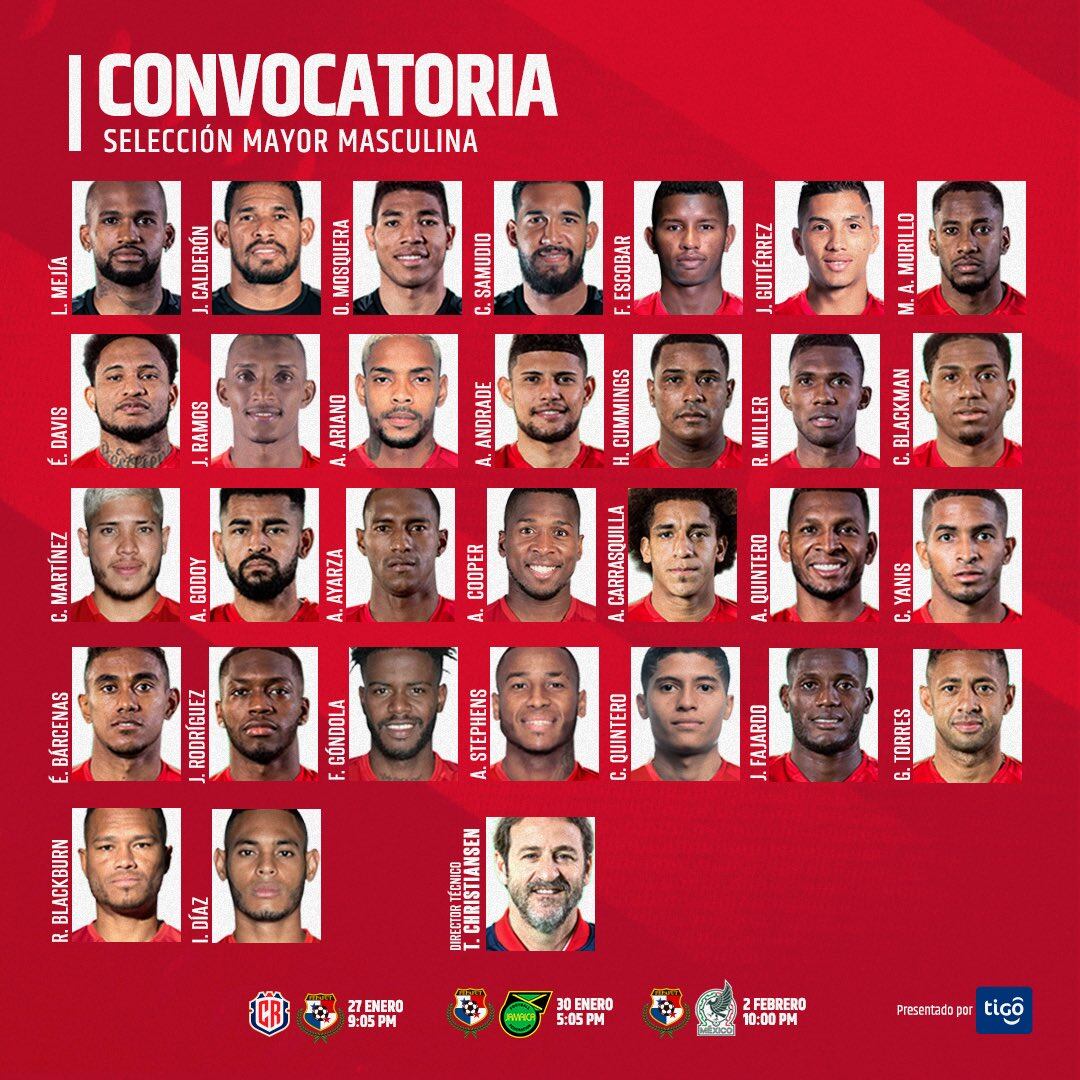 La lista completa la conforman: Luis Mejía, José Calderón, Orlando Mosquera, Fidel Escobar, César Samudio, Jorge Gutiérrez, Michael Murillo, Jiovany Ramos, Azmahar Ariano, Andrés Andrade, Harold Cummings, Roderick Miller, César Blackman, Éric Davis, Cristian Martínez, Aníbal Godoy, Abdiel Ayarza, Armando Cooper, Adalberto Carrasquilla, Alberto Quintero, César Yanis, Édgar Bárcenas, José Luis Rodríguez, Freddy Góndola, Alfredo Stephens, Cristian Quintero, José Fajardo, Gabrel Torres, Rolando Blackburn e Ismael Díaz.