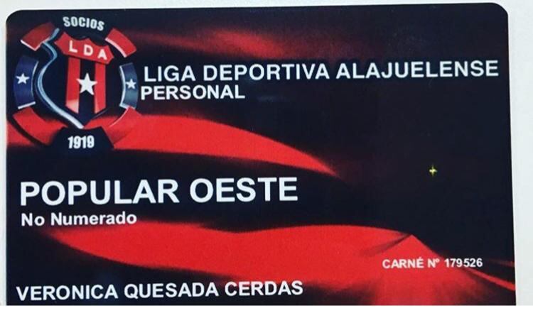 “Ya ella tiene su carné en popular oeste y es socia con todas las de ley. El carné dice Verónica Quesada Cerdas y atrás viene el número de socio, igual que los míos que son de platea”.