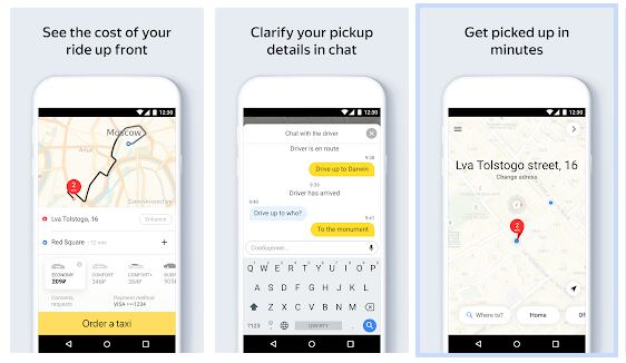 Yandex.Taxi: Es la aplicación de servicio de taxi más grande y usada de Moscú y otras ciudades de Rusia. Se considera como la versión rusa de Uber por las similitudes a la hora de solicitar un viaje.