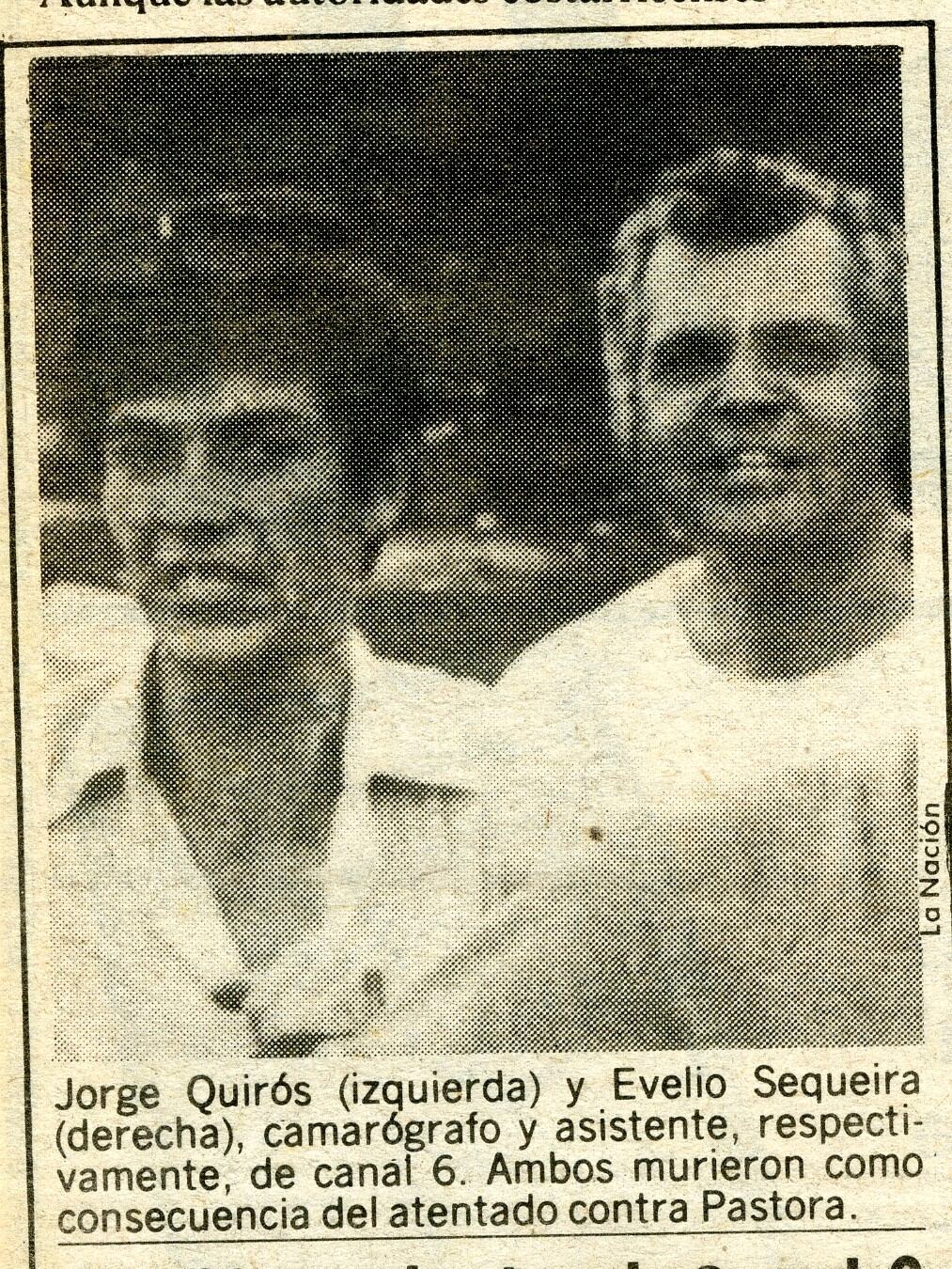 Don José Antonio fue uno de los “afortunados” a los que la explosión no les dio de lleno. Dice que eso fue una cuestión de segundos y del destino, ya que el lugar que él ocupaba en torno a Pastora se lo cedió a Jorge Quirós, el camarógrafo de Notiseis. “Momentos antes me había movido a un metro y medio para colocarle un flash a la cámara. Le dije que le daba el campo, pero que en un rato me volvería a colocar ahí. De pronto, el estallido”, recordó en una entrevista telefónica con La Nación desde su casa, donde vive con su esposa.