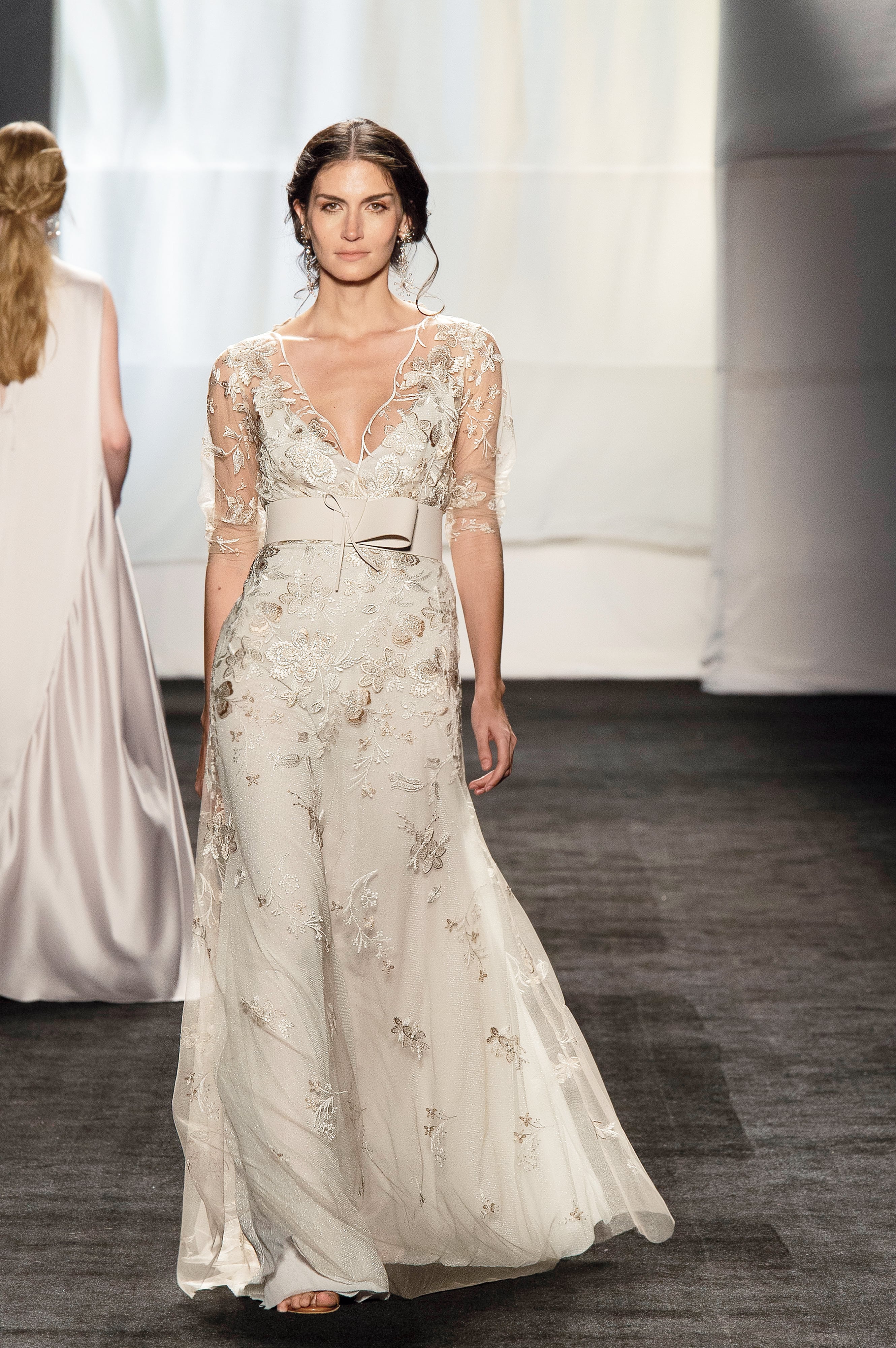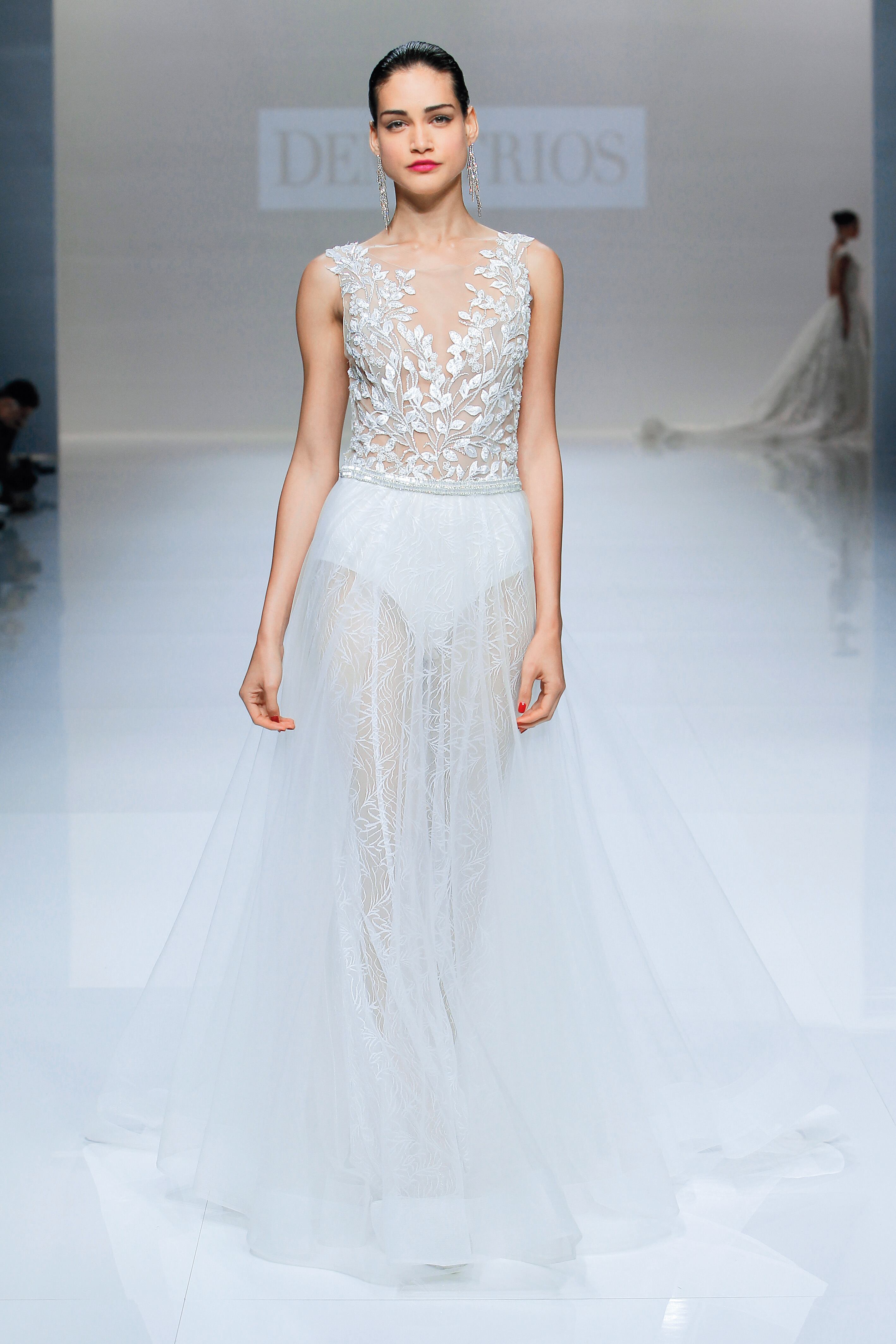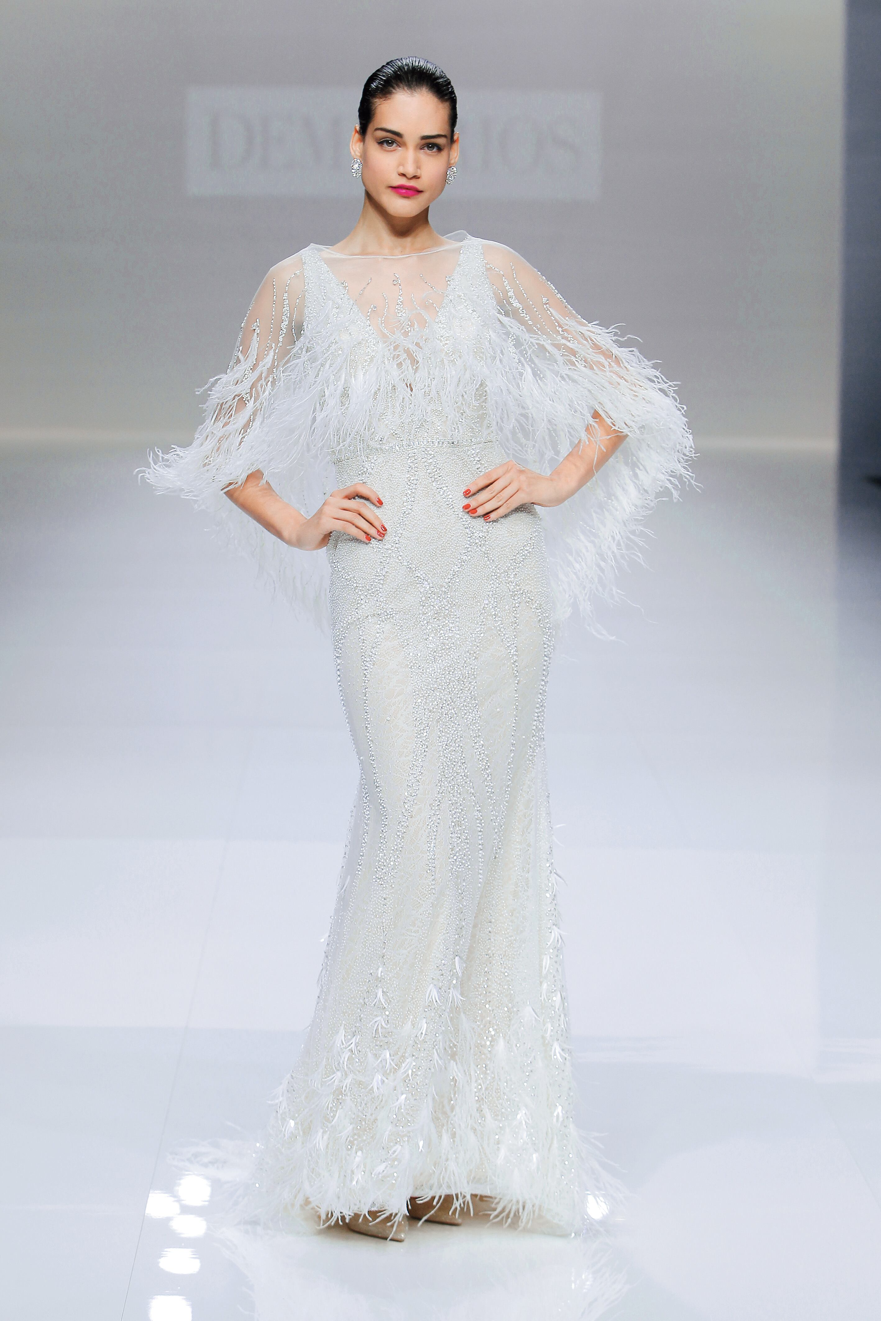 Demetrios: La marca de moda española mezcla el diseño clásico de los vestidos con el detalle del bordado inspirado en la pureza del cristal y movimiento de la nieve. Algunos de los aspectos más destacados de esta impresionante línea son sus increíbles espaldas y su gran variedad de mangas que dejan en muchos casos el hombro al descubierto.