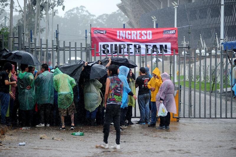 Aunque el típico estilo de roquero quedó cubierto por las capas que intentan protegerlos de la garúa y la posible lluvia, los entusiastas celebraron en una especie de fiesta anticipada, poco antes de que el británico ofrezca su segundo espectáculo en el país.
