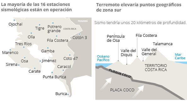 En la península de Osa, la placa del Coco se subduce bajo la microplaca de Panamá. Como parte de ese proceso, a 13 kilómetros de profundidad, una de las placas empuja hacia la corteza superior a un ritmo de siete centímetros por año, explica el más reciente informe sismológico del Observatorio Vulcanológico y Sismológico de Costa Rica (Ovsicori), de la Universidad Nacional (UNA).