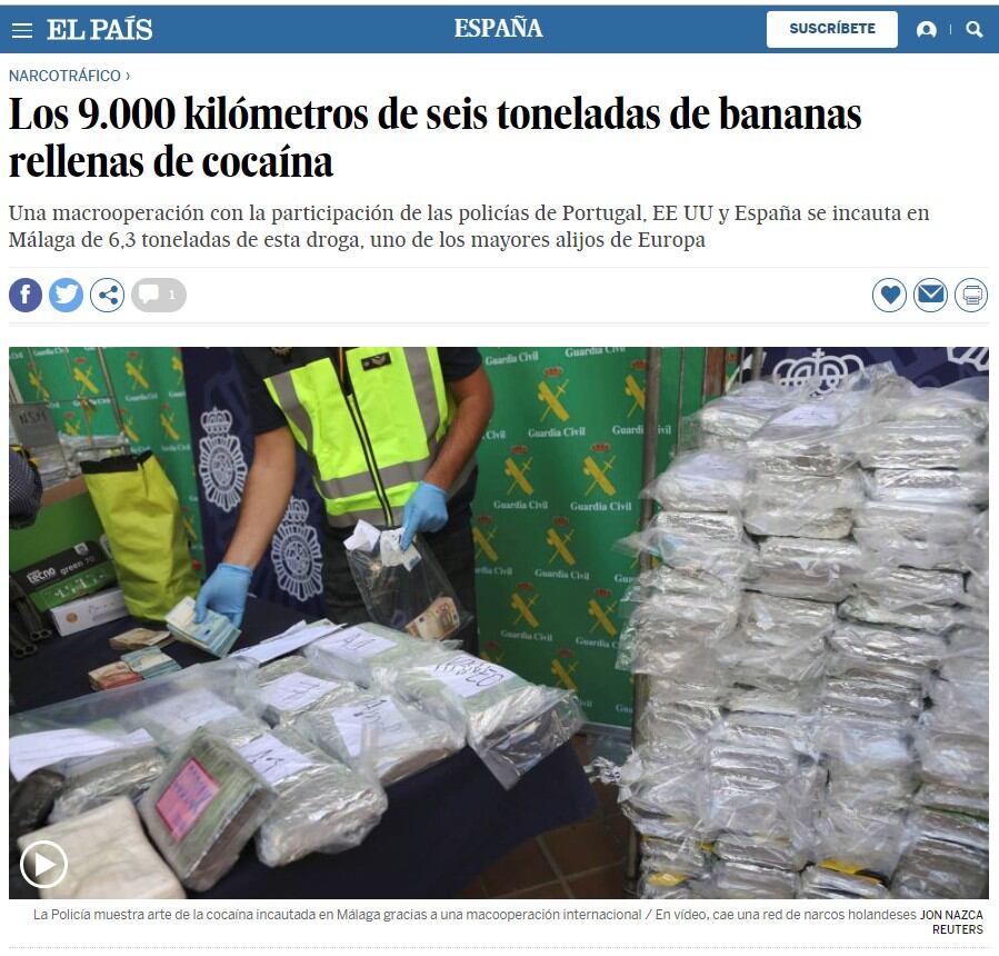 De acuerdo con información divulgada por el diario El País, el producto salió de puerto Limón. Según la nota, la empresa responsable del cargamento, con sede en Badajoz, Extremadura, “envió y recibió hasta 70 contenedores con producto fresco en los últimos meses”.