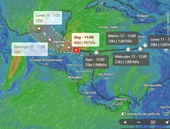 “El centro de la tormenta Sara continuará moviéndose cerca de la costa norte de Honduras hasta el sábado, antes de acercarse a Belice, para luego moverse sobre el territorio de Belice durante el día el domingo”, indicó el Centro.