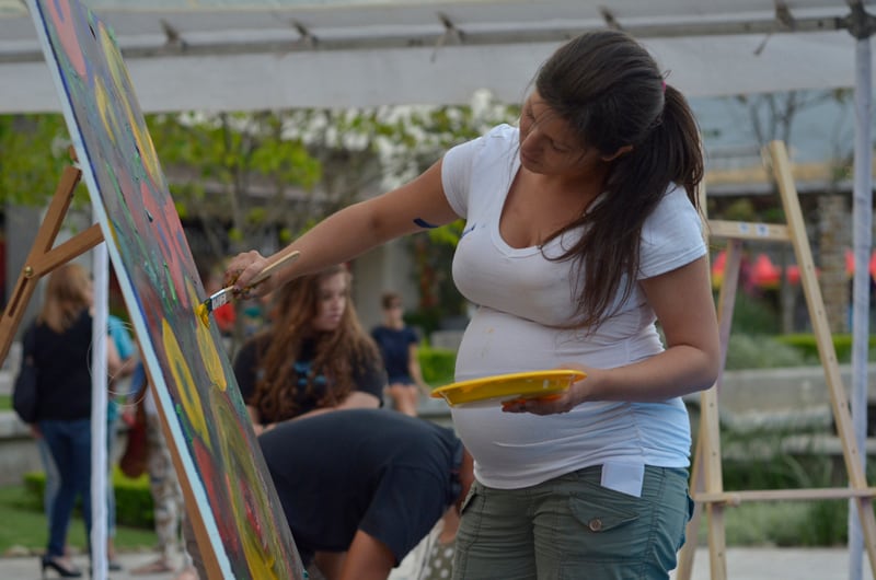 La mecánica era muy sencilla: cuatro caballetes con lienzos en blanco y una gran cantidad de tubos de pintura acrílica esperaban por el talento de los artistas.