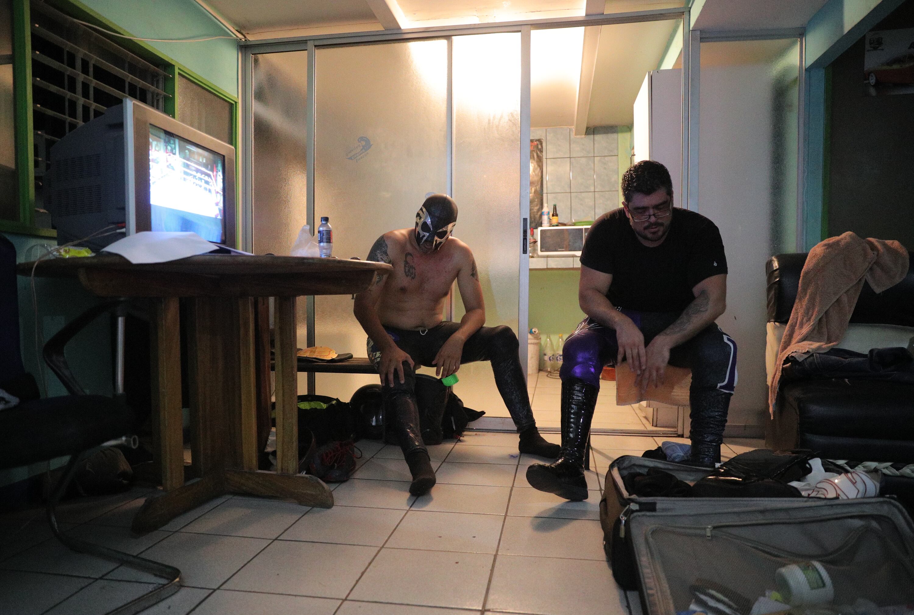 Este es el el salón de la CWE (Costa Rica Wrestling Embassy), donde dos veces al mes hombres y mujeres asumen otra identidad. Se convierten en enmascarados para partirse el cuerpo y el rostro sobre la lona. Todo esto para rendirle tributo a sus héroes y emocionar a una creciente fanaticada.