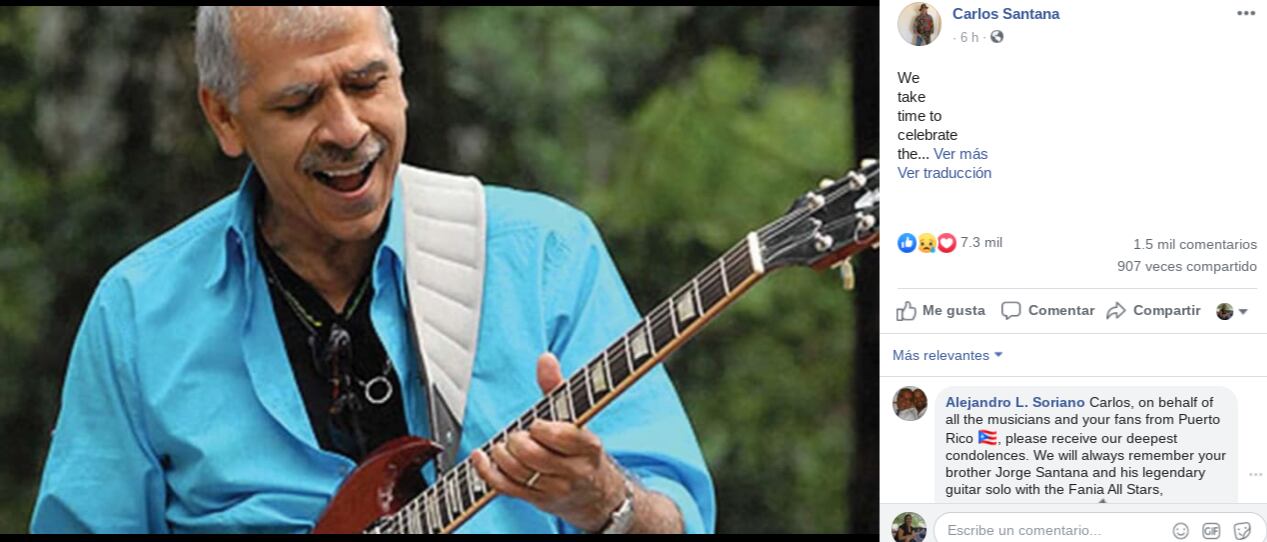 A través de sus redes sociales, el guitarrista mexicano Carlos Santana informó del fallecimiento de su hermano menor, el también guitarrista Jorge Santana, de 68 años de edad.