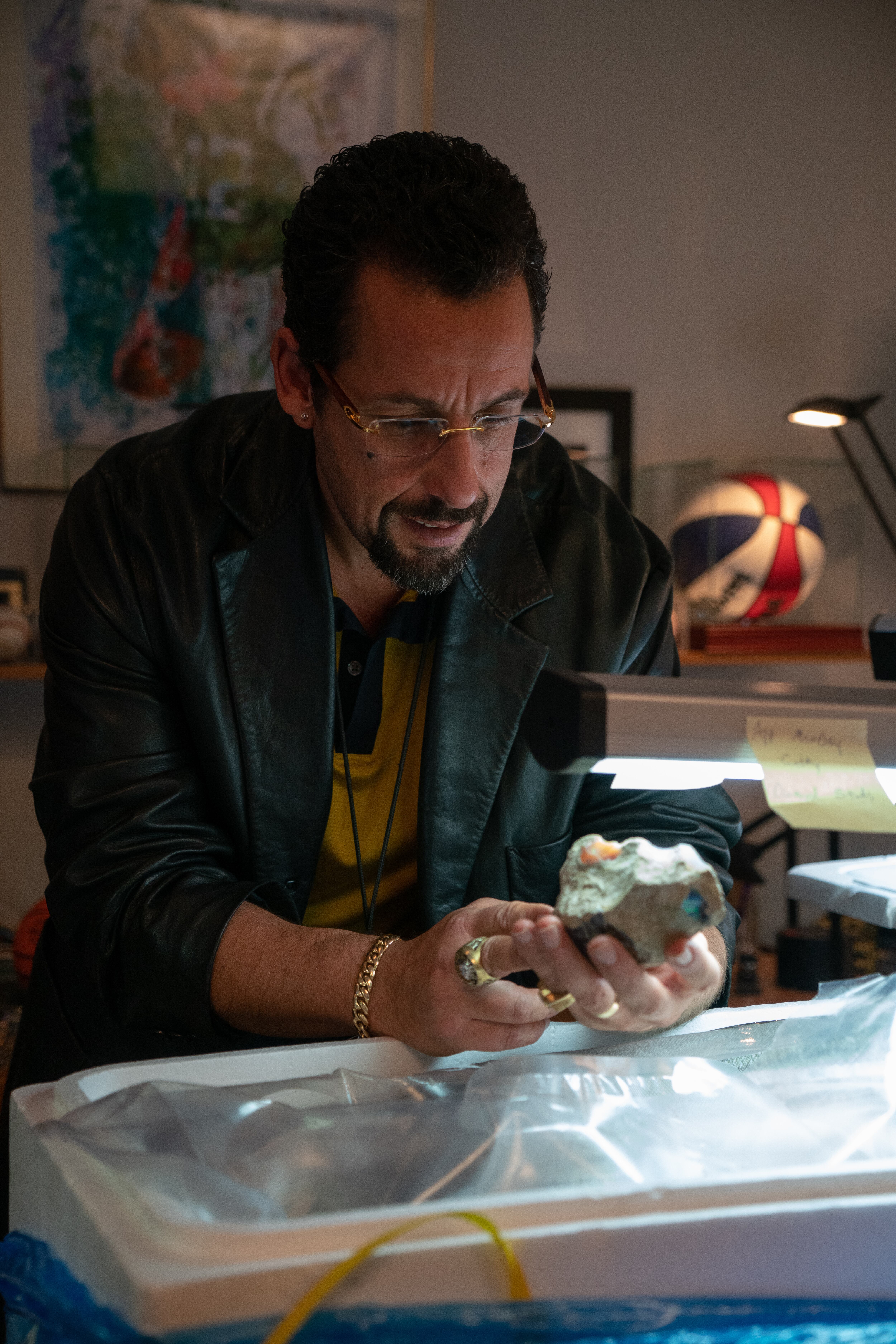 Allí vemos al actor convertido en Howard Ratner, un empedernido optimista y reconocido joyero judío del Distrito del Diamante de la ciudad de Nueva York, quien siempre está en la búsqueda de su próximo tesoro. Lograrlo se convierte en una utopía personal, porque mientras más cerca ve su posibilidad de lograrlo más termina alejándose de ello.