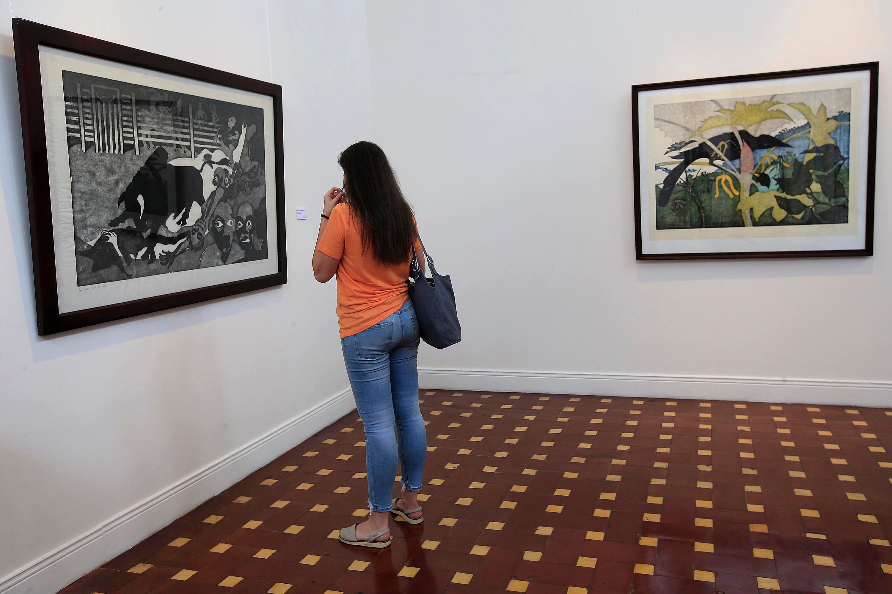 El visitante encontrará xilografías –grabado en madera, que es, quizá, su trabajo más alabado–, grabado en metal, litografías, serigrafías y monotipias.