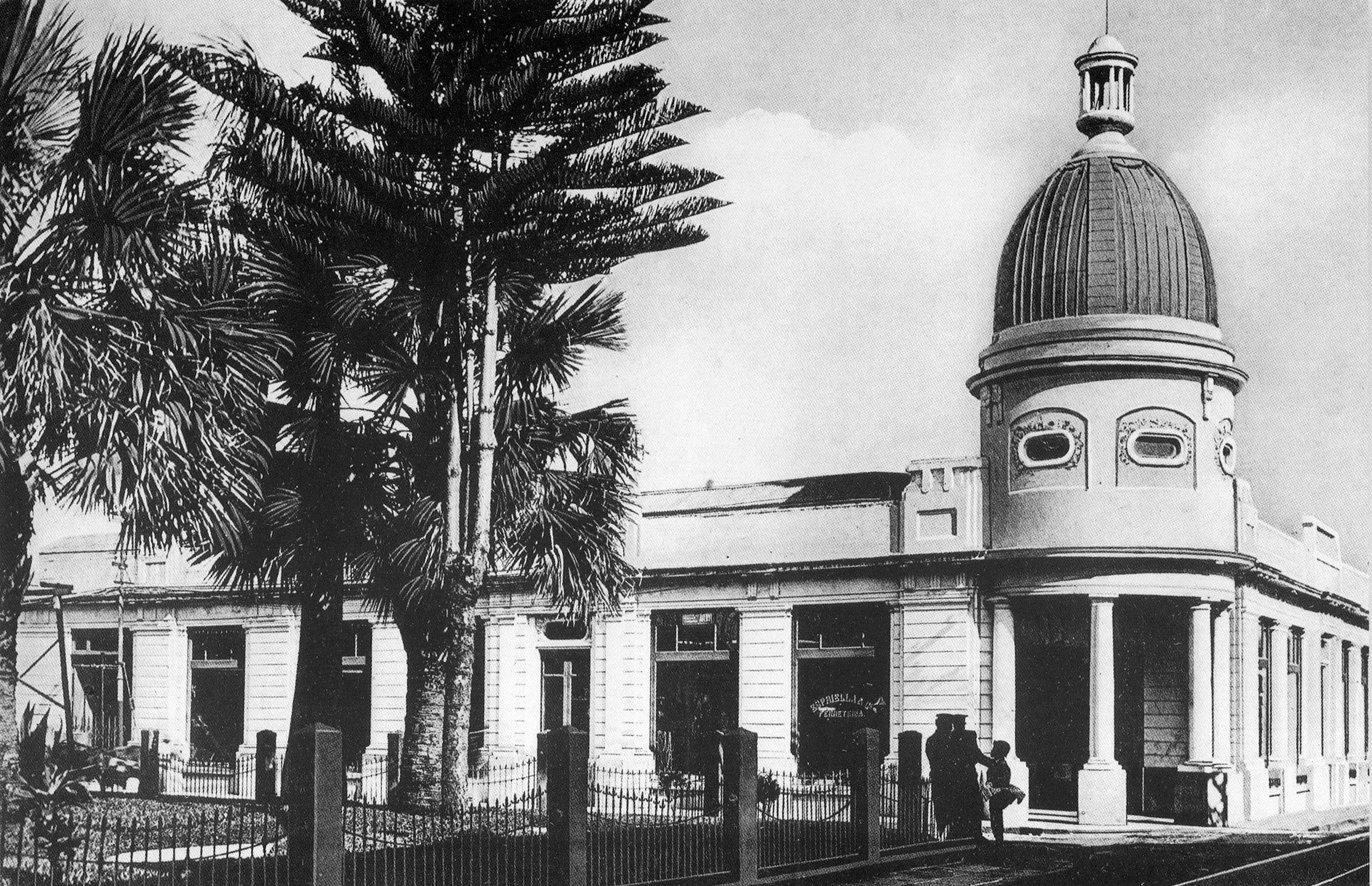 En 1917, en la esquina noroeste de avenida 3 y calle Central, se inauguró el edificio de arquitectura neoclásica de la Ferretería Espriella y Compañía. Diseñado como edificación comercial fue construido en mampostería de ladrillo; su rasgo más significativo era la cúpula de concreto armado, que culminaba el pórtico semicircular que lo abría hacia la esquina.