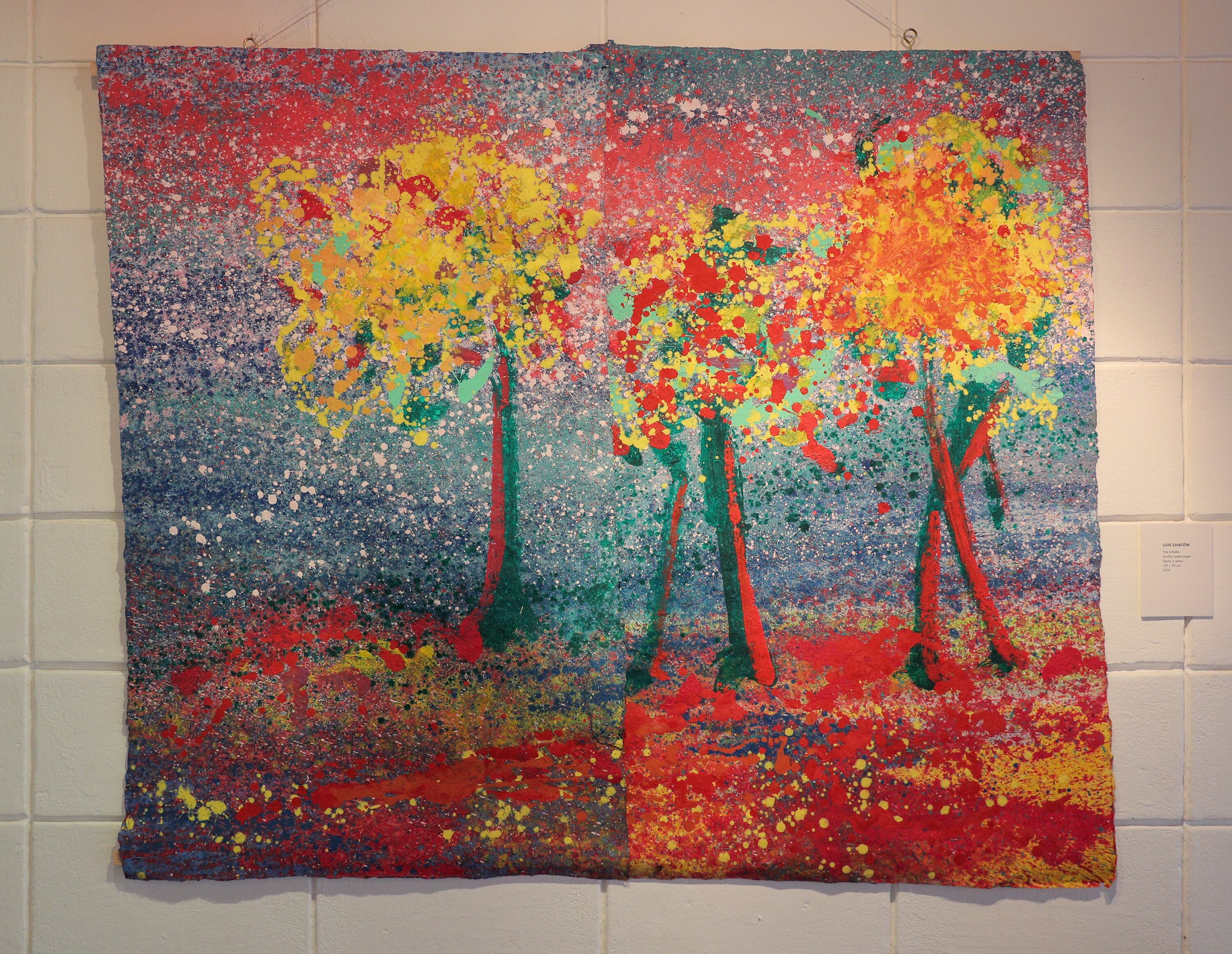 Al acudir al color genera tensiones cromáticas que encienden las emociones más íntimas. Es una obra provocadora, en la que sentimos el efecto que tiene el arte de contagiarnos, de clamar por escuchar esos “trinos visuales” que saltan entre sus distintos componentes del cuadro, entre el árbol y la montaña, entre el rayo de luz y las aguas costeras, entre los ritmos tímbrico-gestuales que Chacón produce y son su firma.