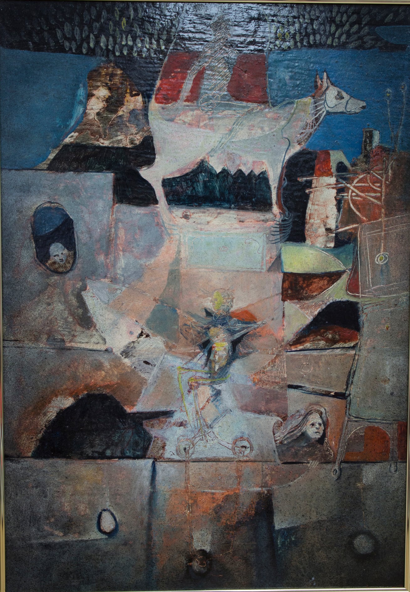 Por ejemplo, el Museo de Arte Costarricense (MAC) tiene en su acopio los óleos Presagios de guerra (1966) y Sociedad de consumo (1980).