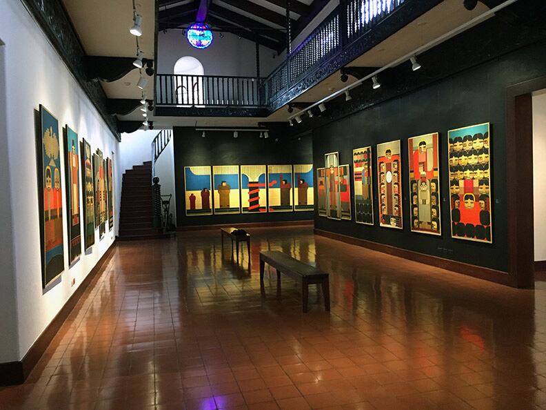 Uno de los mayores problemas para conformar la exposición fue reunir todos sus cuadros, empezando por la colección Parroquia de San Ramón Nonato de 1987, que recibe al visitante en la primera sala de la exposición en el museo de La Sabana.