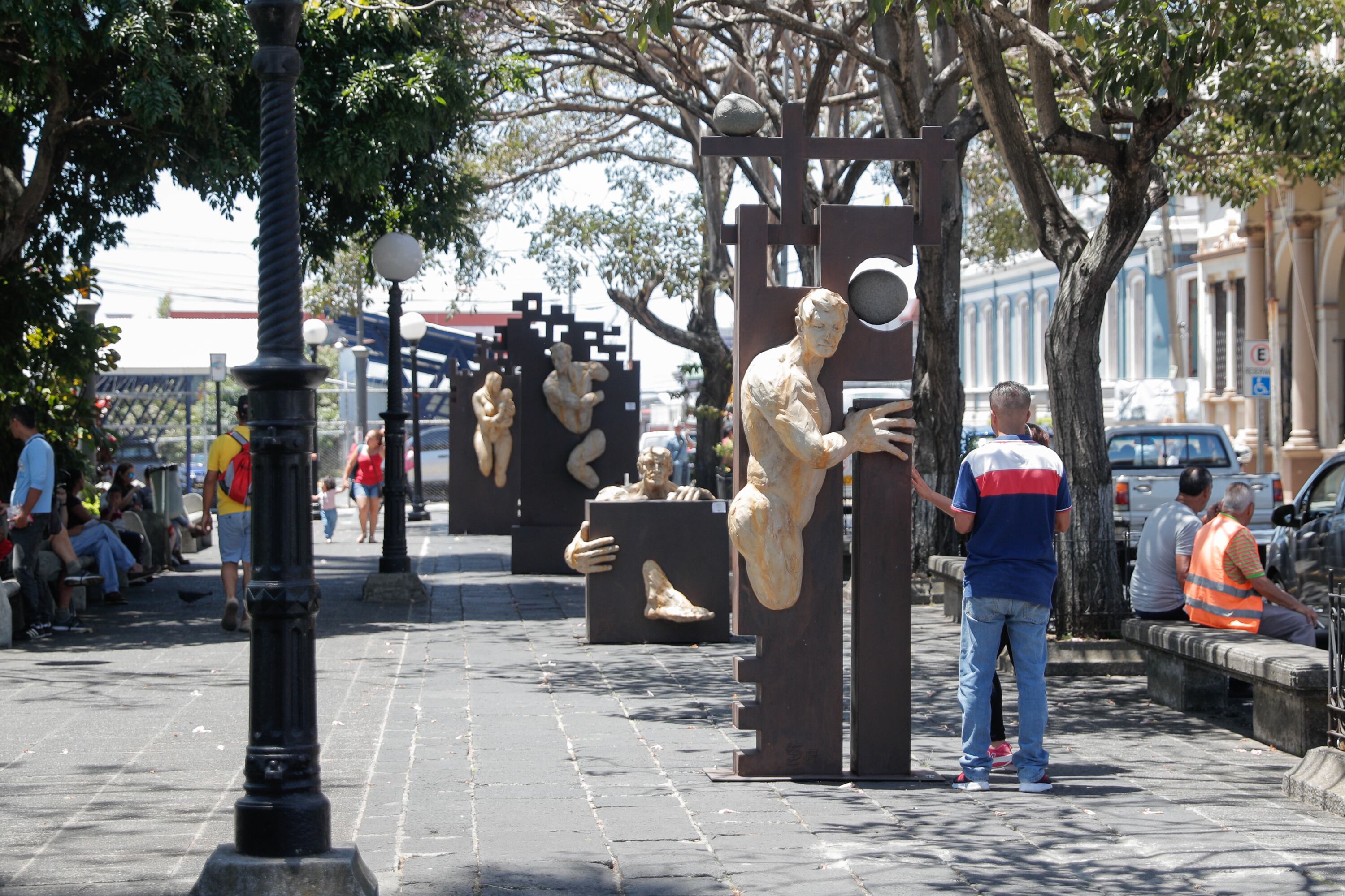 Aquellos con un destino definido se toman un par de segundos para sentir las extremidades de las atormentadas figuras en piedra ubicadas frente al correo. Unos, más curiosos, se salen de su camino y observan con detenimiento las curvilíneas expresiones en madera. Quienes van con más tiempo hasta continúan el trayecto con los estoicos rostros presentes en el Centro Cultural Herediano Omar Dengo y la Casa de la Cultura Alfredo González Flores.