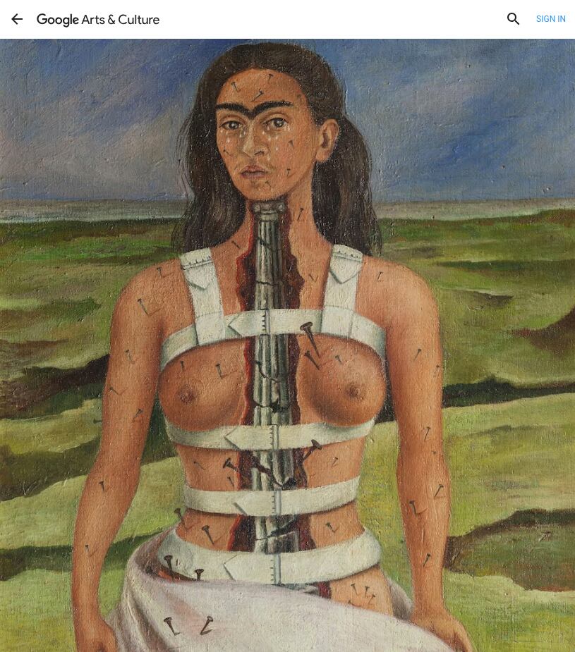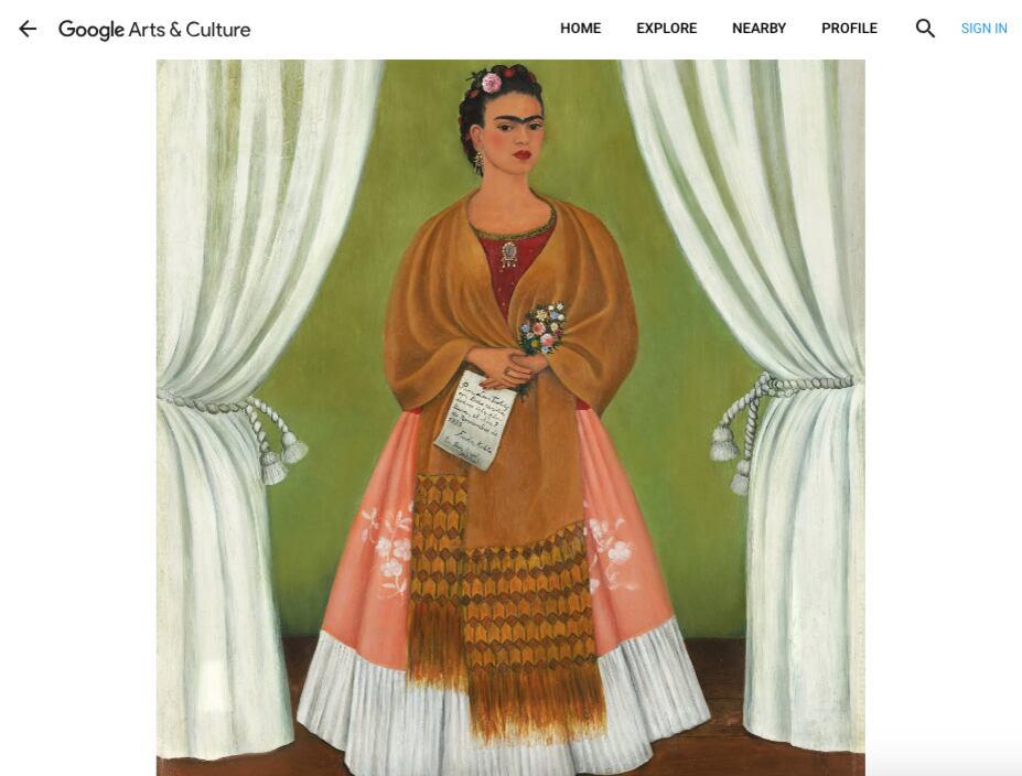 Para lograr tan ambicioso acercamiento, se ofrece una biografía comentada acerca de la artista –es una exhibición online con fotos entrañables y obras de su propia producción–, un artículo de la relación de la artista con la política y una entrevista con Frances Borzello para descubrir a Frida más allá de las anécdotas.