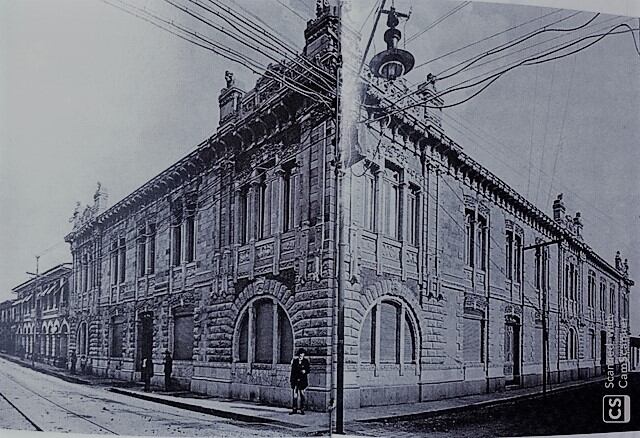 El edificio fue construido por el arquitecto italiano Francisco Tenca entre 1906 y 1907, quien introdujo el modernismo en Costa Rica. Los materiales de construcción fueron el ladrillo y tiene acabados de piedra en la fachada. Contaba con dos pisos con un patio interno.