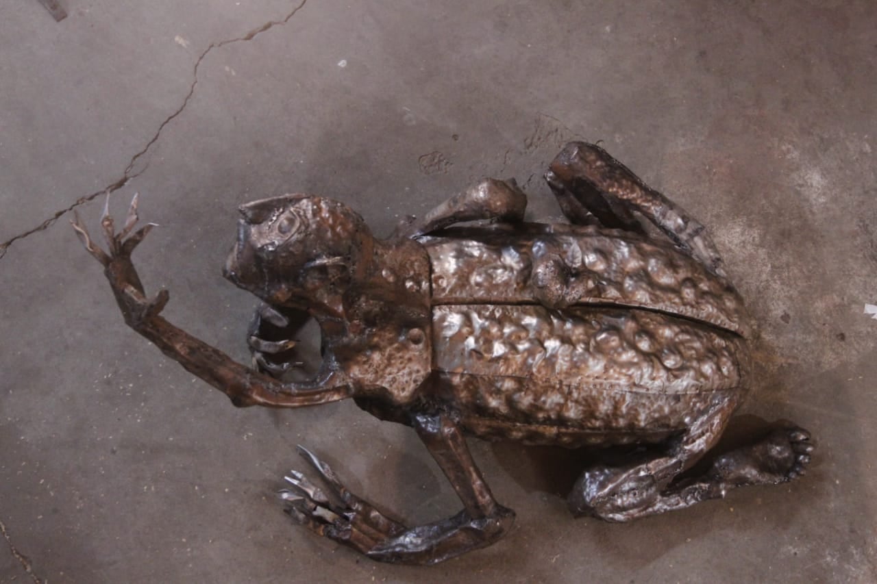 En el proceso creativo, el artista forja una pata que soldará al cuerpo.