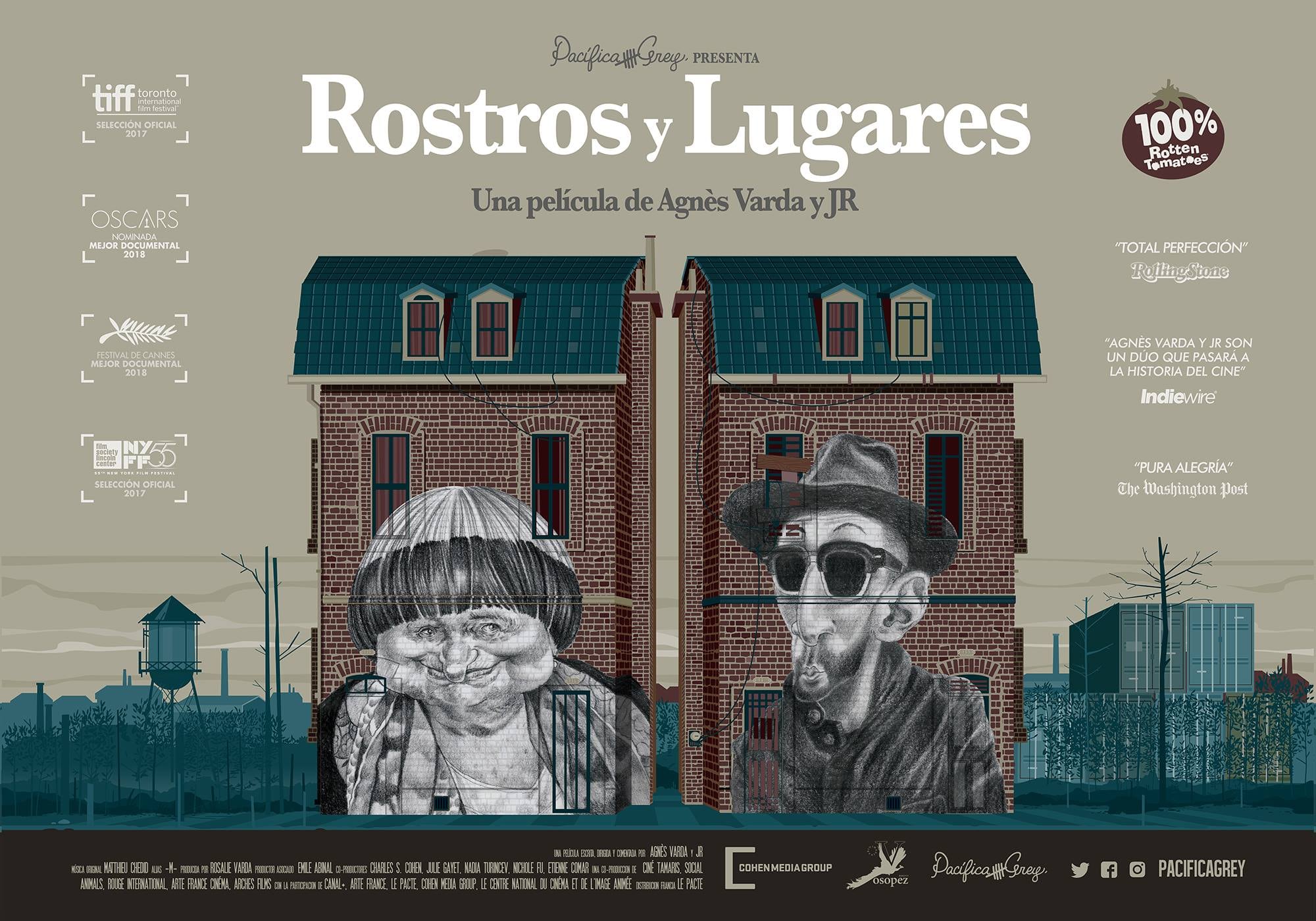 En Rostros y lugares, ella se alía con el fotógrafo y artista gráfico urbano francés Jr, quien codirige la película. Ambos visitan pequeñas comunidades, conocen a los habitantes de los pueblos y crean grandes retratos de esos personajes, con lo cual se crea un sentimiento de identidad y de unión en los lugares donde se presentan.
