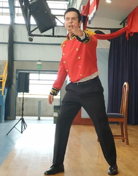 El trabajo actoral corre en su totalidad a cargo de Roberto Zeledón, avezado actor de nuestro medio con una larga trayectoria en las tablas –como se dice en la jerga teatral–, tanto en el país como fuera de él. Roberto logra, gracias a su presencia escénica y a la dinámica que le imprime a su trabajo, crear una atmósfera de complicidad y equilibrio con el público, que lo sigue atento, divirtiéndose y aprendiendo, reafirmando lo visto en clase, discrepando a veces, tomando partido ante las preguntas del actor, fascinado con el juego teatral que Roberto desarrolla a ojos vista, pasando de un personaje a otro, para finalmente, salir de la sala con una experiencia que es posible quede grabada para siempre en su memoria. Quiero subrayar el tema del respeto al auditorio, tan palpable en esta obra, porque muchas veces asistimos al teatro y salimos decepcionados y molestos porque sentimos que estuvimos frente a una “tomadura de pelo”.