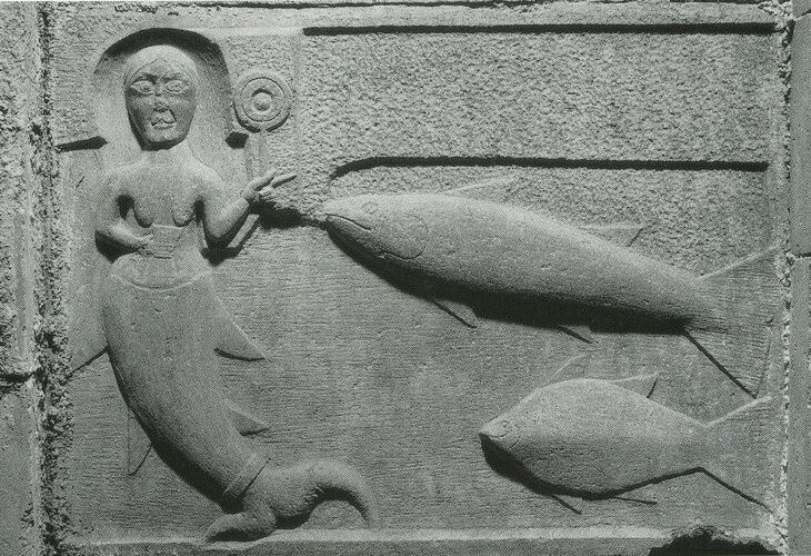 Durante la Edad Media se pensó en la sirena como una joven de ondulante cabellera, pechos desnudos y cola de pez para representar las tentaciones de la carne. Por ejemplo, en la Abadía de Kilcooley, Irlanda, se observa un relieve de piedra en una pared, tallada entre 1400 y 1600. Allí, una sirena sostiene un espejo, y se cree que cumplía el propósito de advertir a los monjes sobre los llamados “pecados sexuales”.