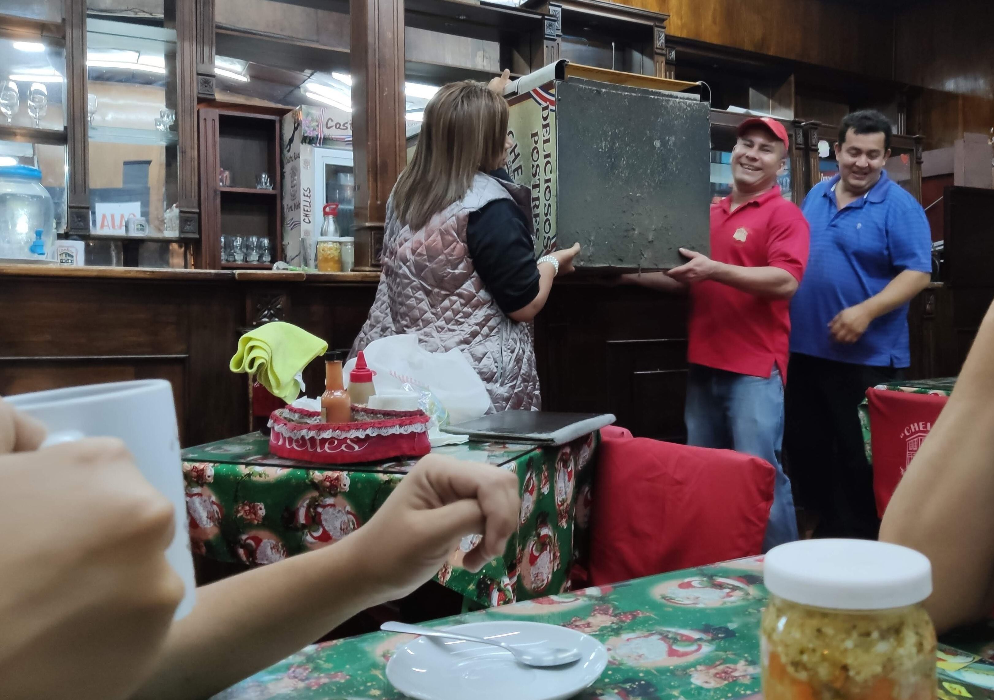 La Navidad aún no se había ido del salón porque seguía viviendo en los manteles; unos corazones desperdigados por las paredes recordaban que ya venía San Valentín, aunque fuera de una celebración pasada. El café y el aguadulce llegaba a la mesa en tazas con la imagen del lugar y el recordatorio de que tenía más de un siglo; quedaban cinco y estaban en venta a ¢3.500 cada una como souvenir.
