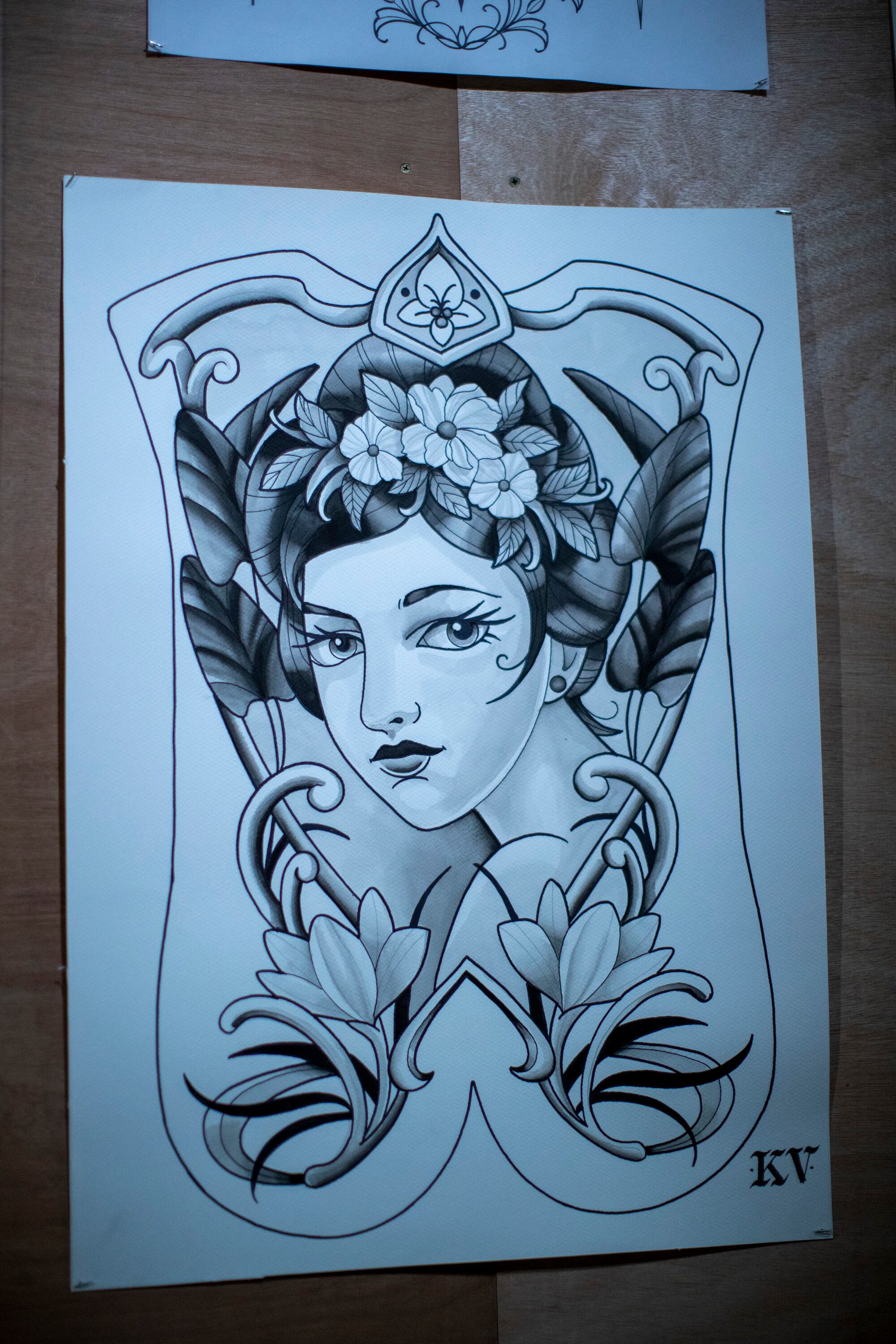 Ella, particularmente, encontró la pasión por el tatuaje a través de su padre, quien siempre recibía a tatuadores en su casa. El anzuelo apareció por sí solo y, conforme fue creciendo, iba fascinándose con la idea de no solo querer tatuarse, sino crear.