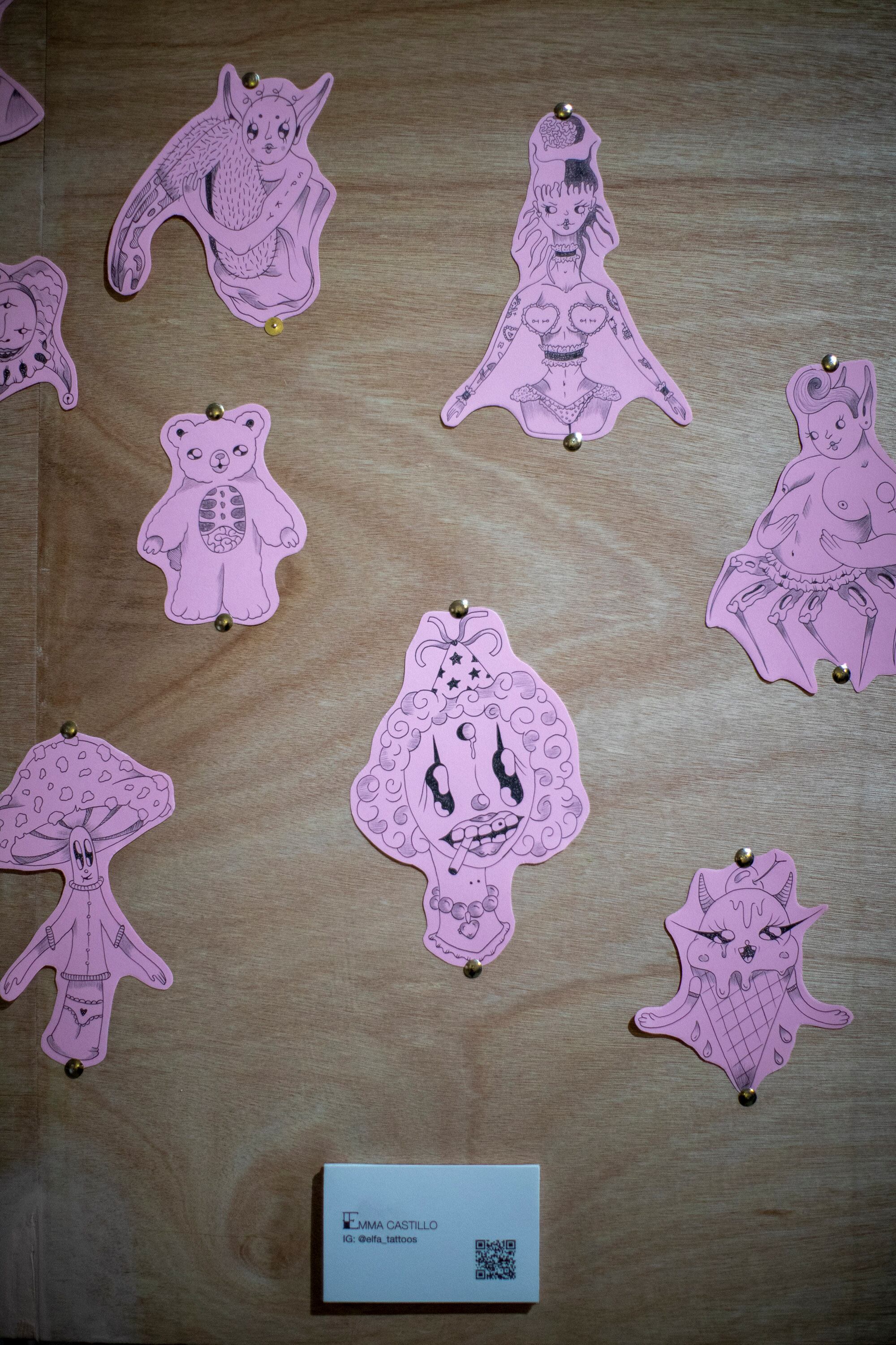 Allí hay obras de artistas como Laura Astorga, artista visual que realizó diseños que no fueron pensados para ser tatuados, con contenidos más políticos y reflexivos, y que igual acabaron siendo insumo para marcar en la piel.