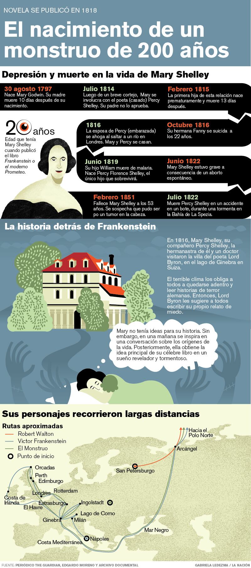 Una de ellas, quizá la más trascendental, fue la novela epistolar de ficción Frankenstein o el moderno Prometeo, de Mary Shelley (1797-1851), publicada en 1818. En ella se detalla la historia de un monstruo de 2,44 metros de altura construido a partir de cadáveres robados por el obsesionado científico Víctor Frankenstein. Alrededor de la figura del monstruo de Frankenstein se han hecho cerca de 100 películas y un gran número de series de televisión y otras obras, lo cual demuestra el impacto de esta historia.