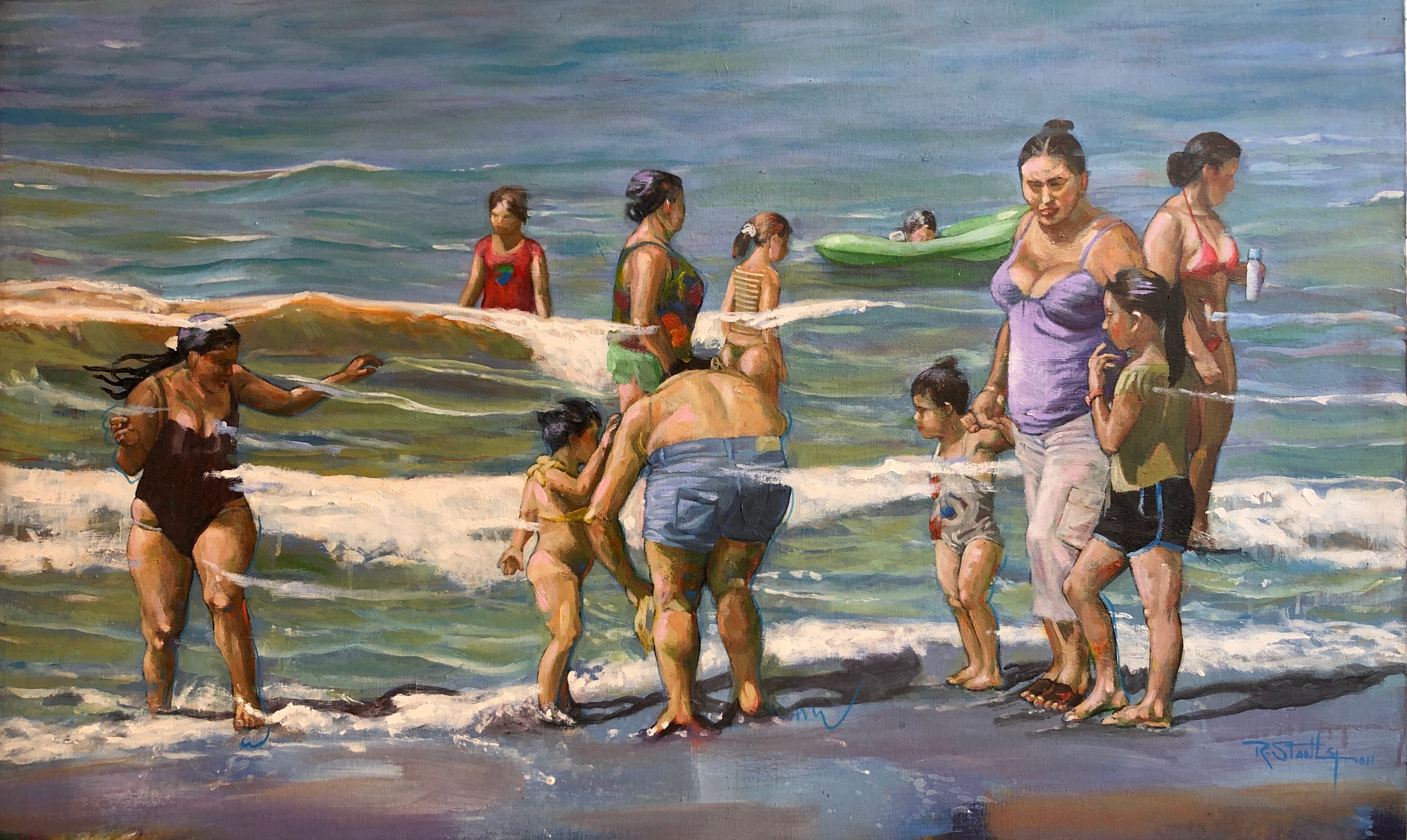 Esta obra pertenece a la serie Los comegüevos, ejecutada por Stanley entre 2010 y 2012. En la serie, el artista aborda las visitas familiares a la playa de Puerto Caldera, donde los bañistas pasan su día de reposo entre tiendas y cocinas improvisadas. El artista se deleita en el registro de pequeños detalles icónicos: sábanas coloridas transformadas en techos y paredes de construcciones efímeras; bolsas plásticas de rayas rojas y blancas, azules y blancas, que penden de los árboles del litoral; hieleras, envases de bebidas y alimentos desperdigados sobre la arena.