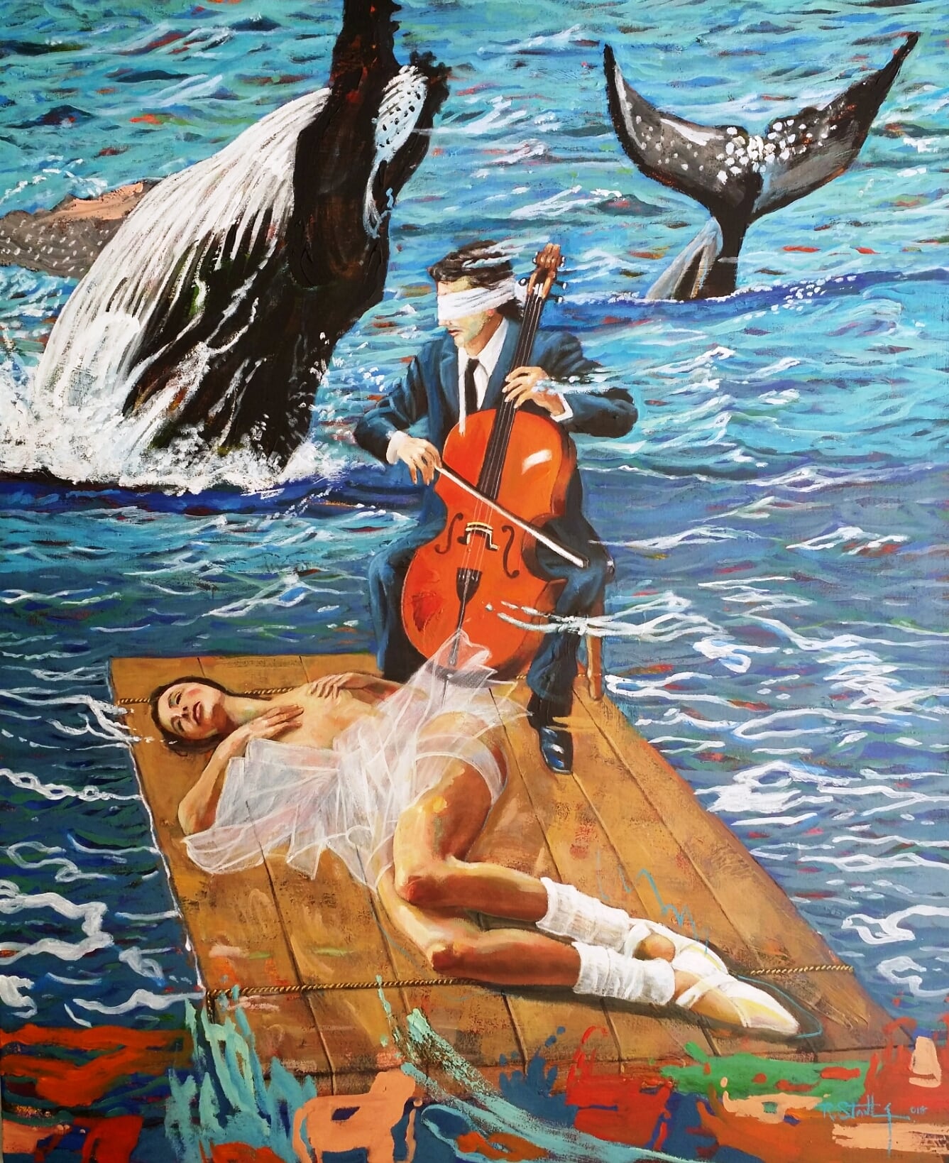 ¿Qué hacen tan juntos un caballo sobre un camastro y una bailarina de ballet sentada en el borde, casi estrujándole las patas traseras? Esta es una pesadilla atenuada, cuya pesantez es aliviada por los colores fuertes y la luz. ¿Cómo entender al pianista que interpreta música bailable en un piano en llamas (dos hombres giran al otro lado de los cristales), mientras otra bailarina de blanco, sentada y vendada, sostiene un látigo? ¿Y la bailarina que reposa sobre un sillón cuando un buzo entra por la ventana empuñando un ramo de rosas rojas?